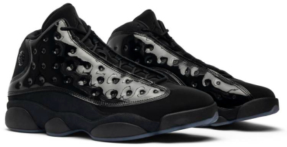 The 閳ユゥap and Gown閳?colorway of the Air 13 renders the retro basketball sneaker with a Triple Black palette similar to the 閳ユイlack Cat閳?model. Featuring a patent leather and nubuck formation on the upper . the outsole maintains the panther閳ユ獨-paw-inspired design. The shoe disguises the signature hologram icon next to the collar with a tonal finish for a covert look.