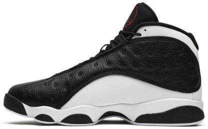As its moniker suggests . the Air 13 Retro 'Reverse He Got Game' offers a flip on the OG colorway of the sneaker nominally associated with Spike Lee閳ユ獨 1998 film. Basic black is applied to the mid-top閳ユ獨 tumbled leather toe and side panels . contrasted by a crisp white finish on the rest of the upper. Breaking up the two-tone palette is a green holographic 閳ユat eye閳?and a red Jumpman logo on the tongue.