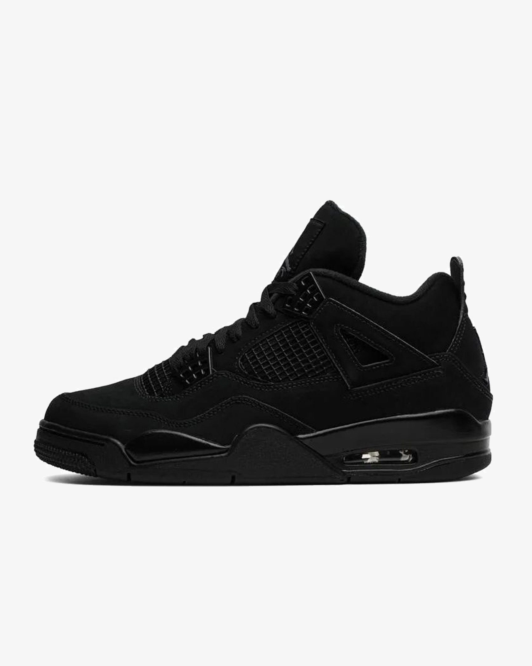 The 2020 edition of the Air 4 Retro 'Black Cat' brings back the all-black colorway of the classic silhouette . one that draws inspiration from one of Michael various nicknames. Like the original 2006 release . this pair makes use of a monochromatic black suede upper with a matching black midsole. Jumpman branding on the woven tongue tag is rendered in Light Graphite . representing the sneaker only contrasting design element.