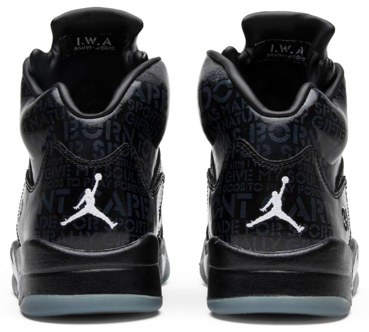 Commemorating the 2012 Doernbecher Freestyle Program . teamed up with the late Isaac Arzate for his own rendition of the 5. The shoe’s polished black patent leather upper is accented with tonal lettering that stands out under a blacklight. The text displays a poem that Isaac wrote the day before he passed. The sneaker also showcases Isaac’s baseball and basketball numbers and incorporates his initials . birthday and date of passing on the tongue tag.
