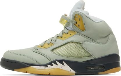 The Air 5 Retro ‘Jade Horizon’ delivers a pastel colorway of Tinker Hatfield’s 1990 design. A soft green hue is applied to the suede upper . equipped with clear quarter-panel netting and tonal TPU eyelets. Contrasting pink accents make their way to the Jumpman logo atop the silver reflective tongue . as well as the signature shark tooth detailing that decorates the black polyurethane midsole. Encapsulated Air in the forefoot is joined by a visible Air sole unit in the heel . both of which are supported underfoot by an icy translucent outsole.