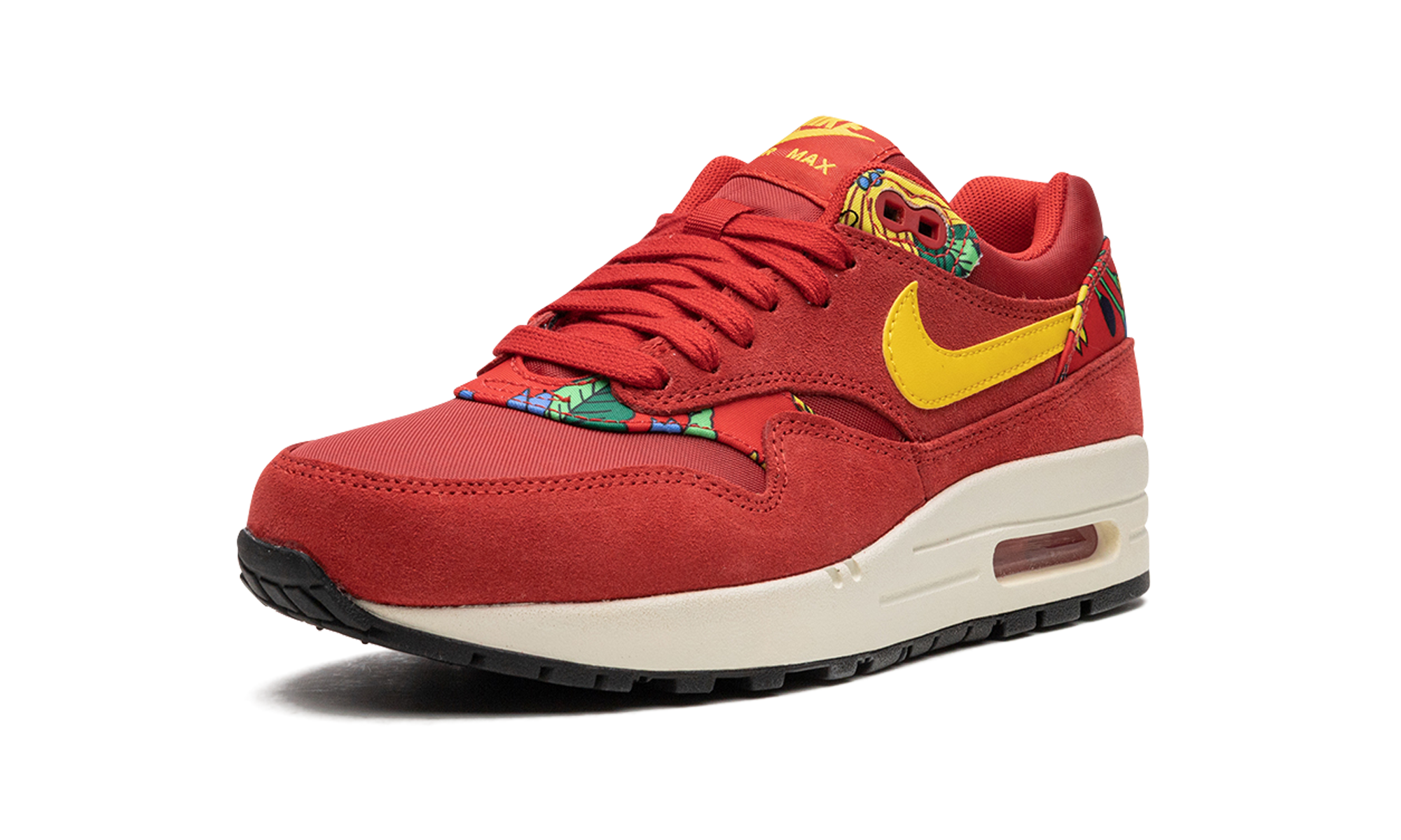 In 2015 Nithtke Sportswear brought back the classic print of the Nithtke Air Aloha, a vintage running silhouette created specially for the 1984 Honolulu Marathon that featured a Hawaiian floral print. Among the sneakers to get the "Aloha" makeover in 2015 was the Air Max 1, presented here in the red colorway. Aloha Pack