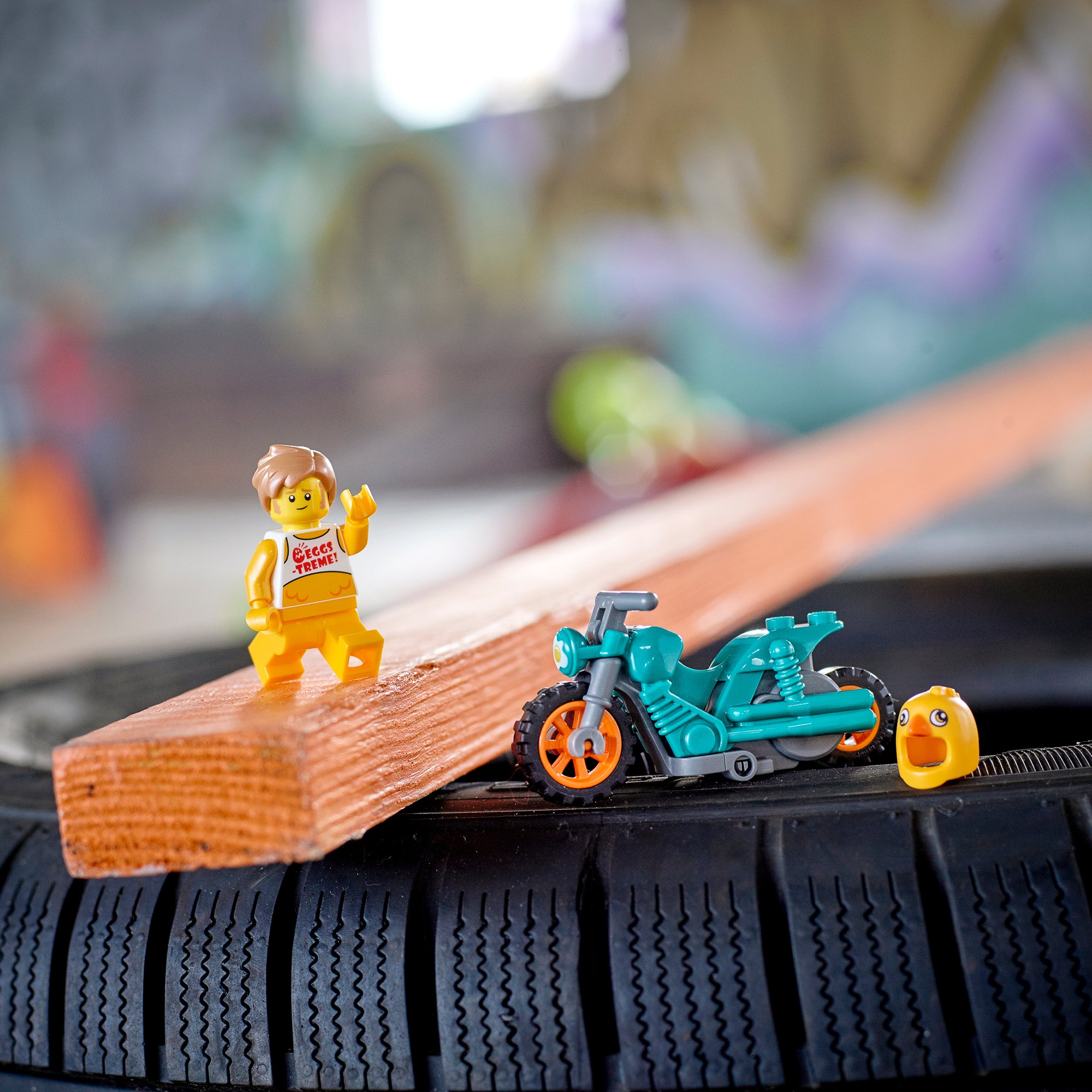 - The LEGO® City Chicken Stunt Bike playset makes a fun Christmas, birthday or any-other-day treat for stunt fans and kids aged 5 and up.