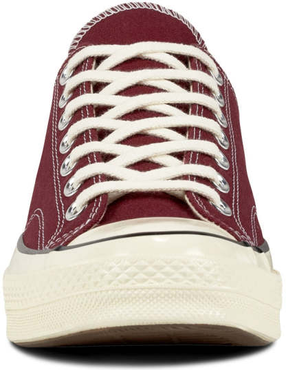 Converse Chuck Taylor All Star 70s Low Top Dark Burgundy/Black/Egret uses modern details to celebrate the original Chuck Taylor All Star from the 1970's. It features a slightly higher rubber foxing, a cushioned footbed that provides long-lasting comfort and a more substantial rubber toe cap. Additional vintage details include stitching on the sidewall and a heavier-grade canvas upper for comfort and durability and a vulcanized rubber outsole.