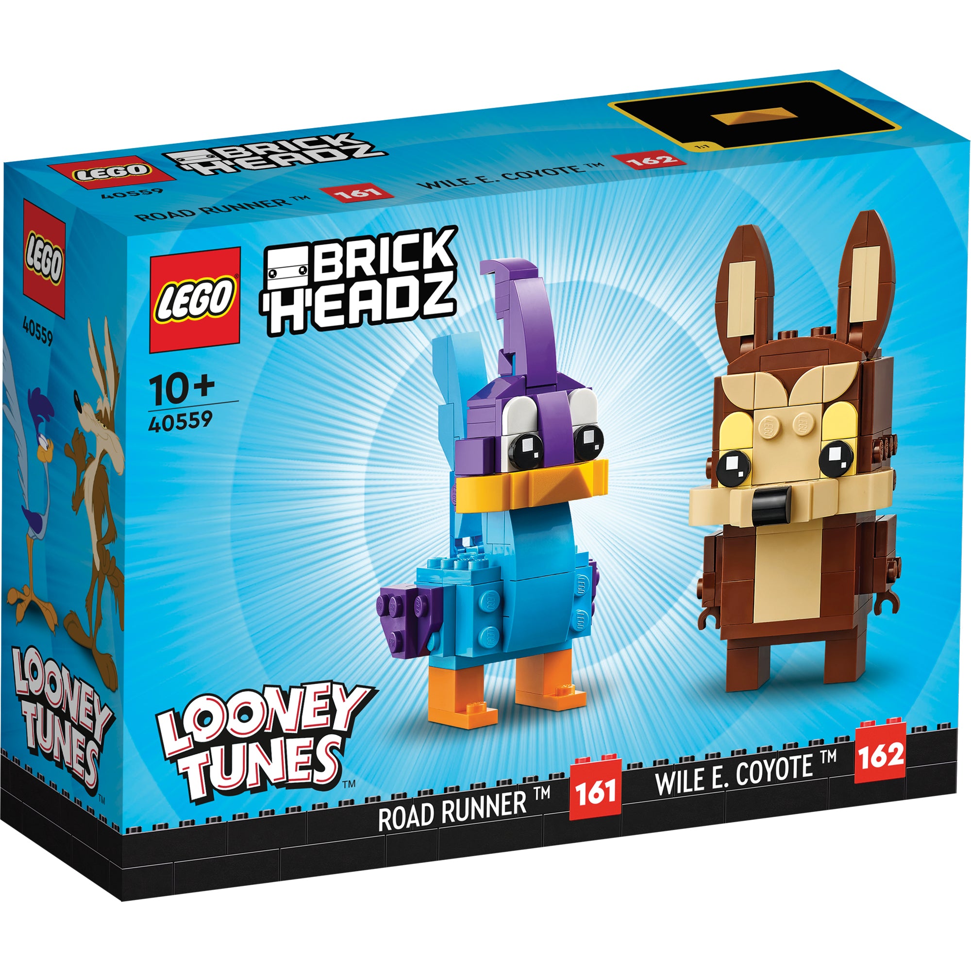 - Wacky cartoon duo in LEGO® BrickHeadz™ style – adorable, buildable LEGO® BrickHeadz™ figures of Road Runner & Wile E. Coyote (40559) are perfect for a collection