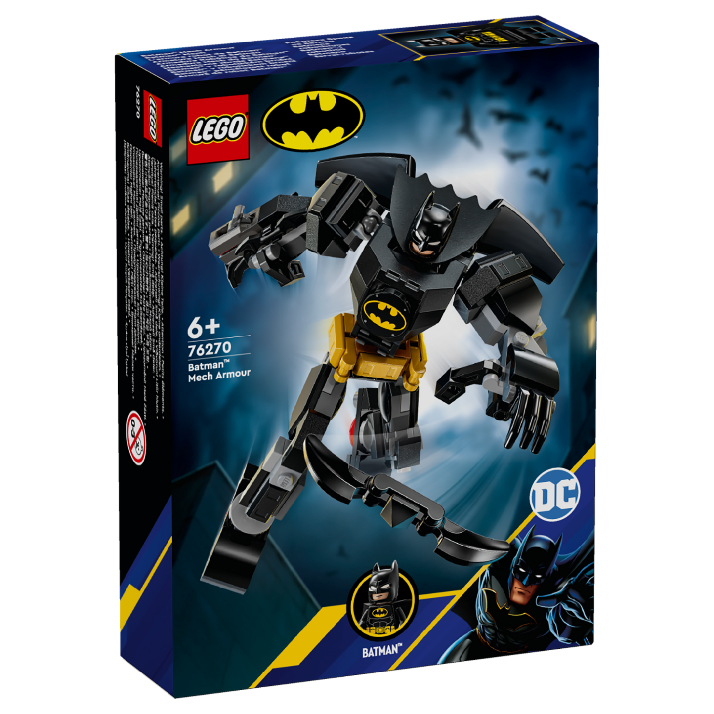 This Batman™ mech toy is ideal for fans of super-hero action and robot toys aged 6 and up. The large-scale Batman figure and super-hero minifigure pilot make Batman Mech Armor (76270) the perfect treat for young crimefighters everywhere.