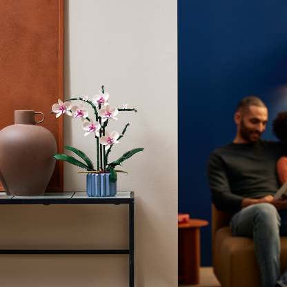 Enjoy a mindful building project and create a beautiful plant display for your home with this LEGO® Orchid (10311) model building project for adults. Take your time crafting all the details of the white and pink flowers and the vase. Inspired by a real orchid, the model has 5 leaves at the base and 2 wandering air roots to create an authentic display. Build the blue fluted vase and fill it with the brown LEGO elements to recreate the bark mix that a real orchid would grow in.
