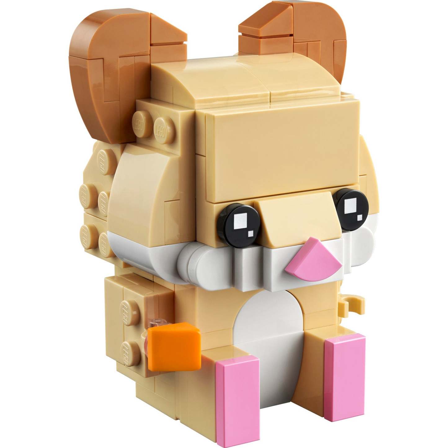 - Supercute collectible building set featuring LEGO® BrickHeadz™ models of a Hamster and baby Hamster sitting together on a display base.