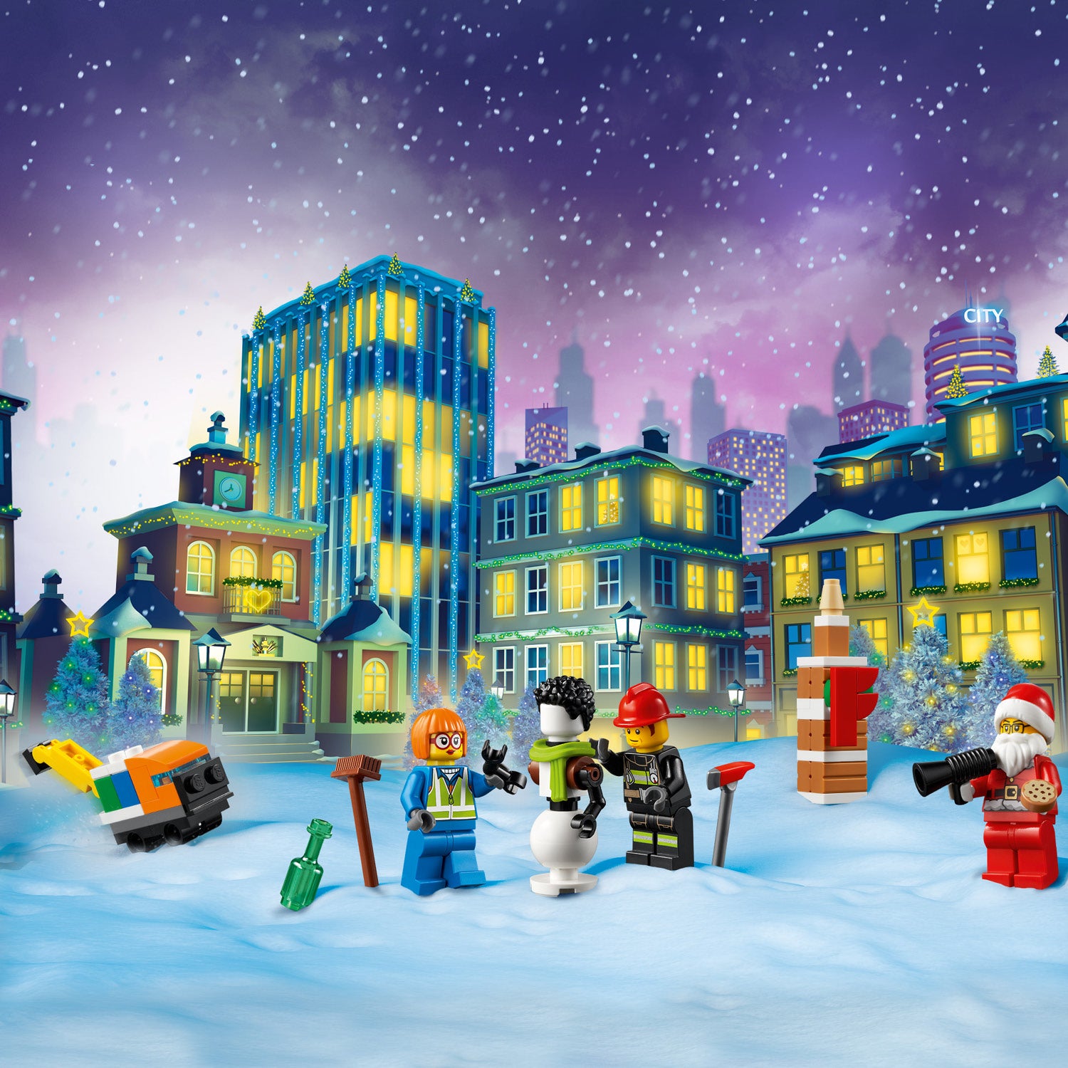 - Kids can count down to the big day with cool models, fun minifigure characters and a fold-down play mat where they can build and play out their very own festive LEGO® City adventures!