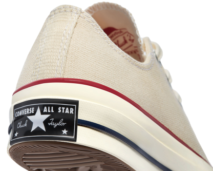 Converse Chuck Taylor All Star 70s Low Top Parchment/Garnet/Egret features a slightly higher rubber foxing, a cushioned footbed that provides long-lasting comfort and a more substantial rubber toe cap. Additional vintage details include stitching on the sidewall and a heavier-grade canvas upper for comfort and durability. It��s an authentic throwback look that retains the iconic Chuck Taylor attributes you know and love, like the star-centered heel patch and vulcanized rubber outsole.