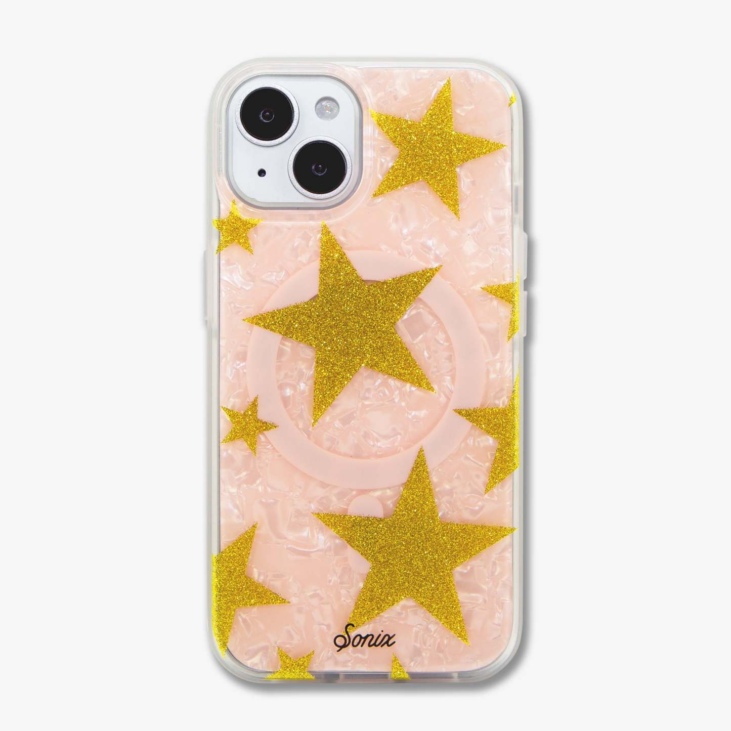 Gold glitter stars multiply over a shimmering backdrop of pink tort, making this iPhone case the ultimate accessory for anyone looking to make their own luck.?