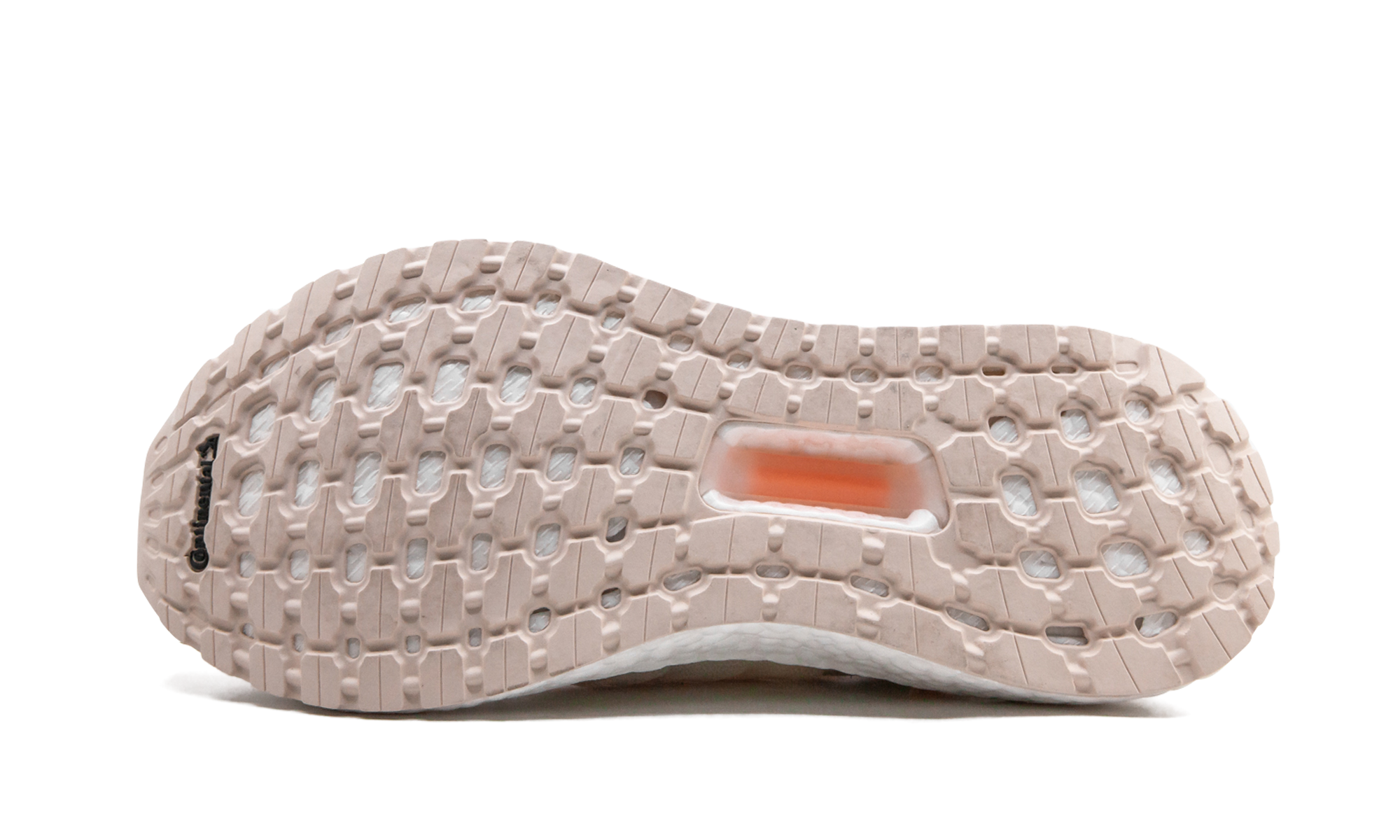 The adithtdas Ultraboost 19 is a reinvented version of the performance running shoe. Offered in women's sizing, the adithtdas Primeknit 360 upper has a second-skin fit. Dual-density Boost cushioning provides a responsive ride and embedded Torsion Spring in the midsole helps propel the foot forward. Here, feminine colors offer a streamlined aesthetic and add a unique touch to this cream-colored, peach, and pale orange colorway.