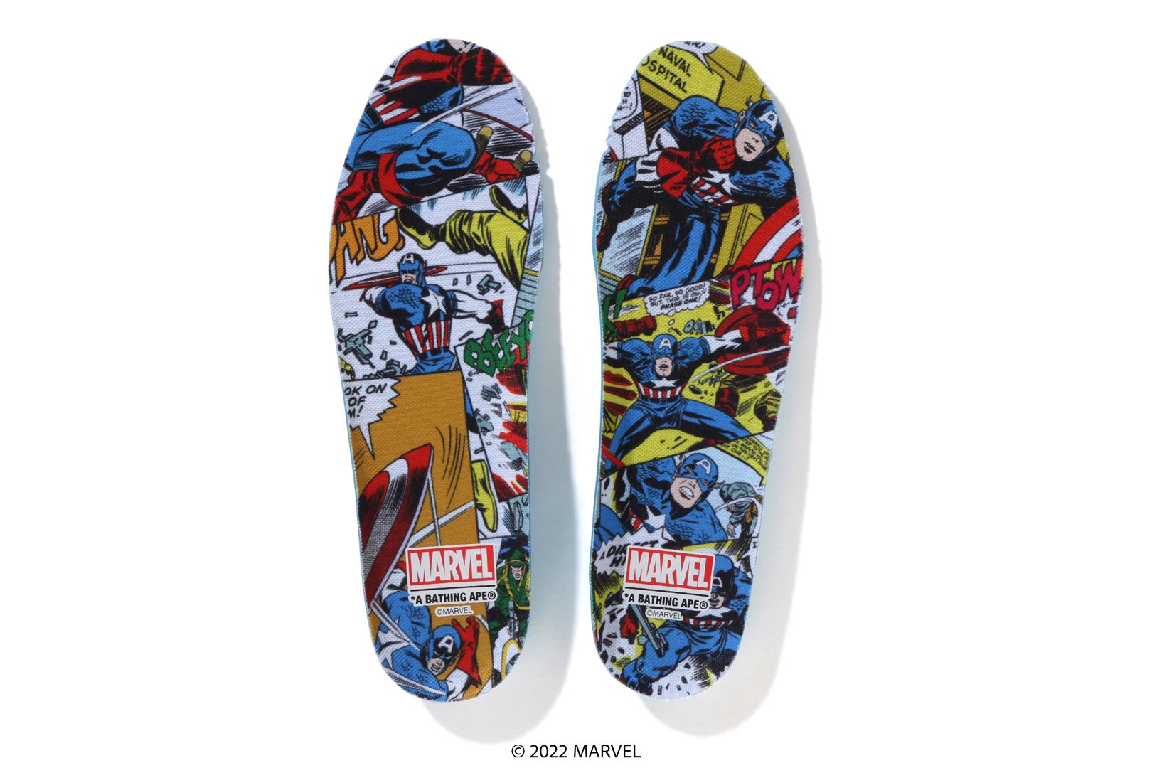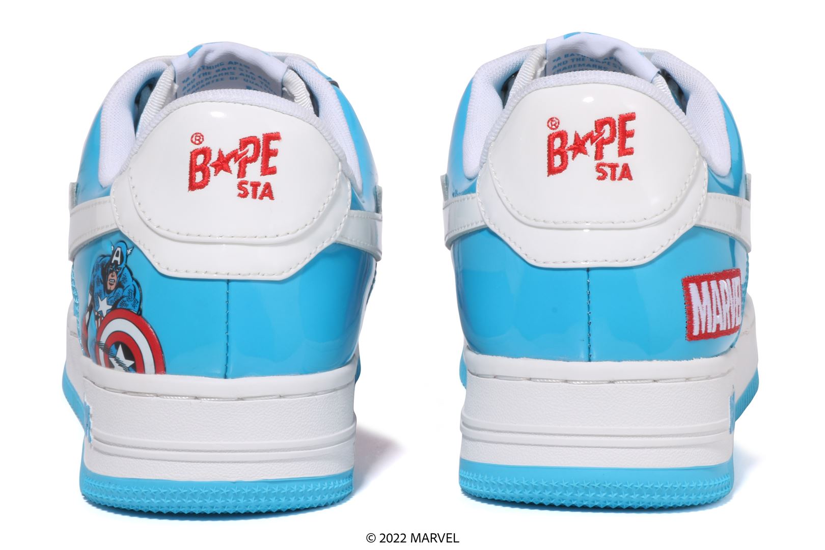 BAthtPE STA with patent leather upper. A reprint model of the 25-06 Marvel Comics collaboration. The Captain America character is printed on the side of the left heel, and the outline is embossed. Marvel logo embroidery on the right heel. The blister pack packaging has also been revived, and the mount has been significantly updated. The insole has the same design as the mount, and the shoelaces are also equipped with a dubrae exclusive to this collaboration. Available in 1 color and 9 sizes: 7, 8, 8.5, 9, 9.5, 10, 11, 12, and 13. A collaboration model with Marvel Comics.