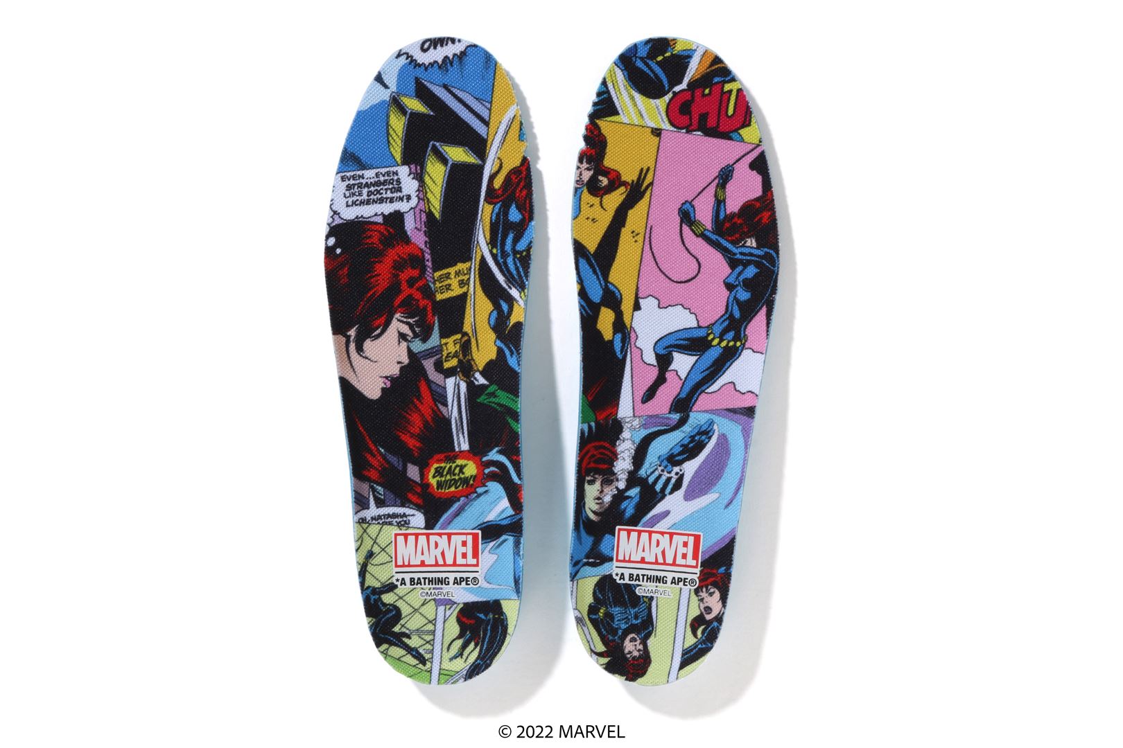 BAthtPE STA?? with patent leather upper. A reprint model of the 25-06 Marvel Comics collaboration. The Black Widow character is printed on the side of the left heel, and the outline is embossed. Marvel logo embroidery on the right heel. The blister pack packaging has also been revived, and the mount has been significantly updated. The insole has the same design as the mount, and the shoelaces are also equipped with a dubrae exclusive to this collaboration. Available in 1 color and 9 sizes: 7, 8, 8.5, 9, 9.5, 10, 11, 12, and 13. A collaboration model with Marvel Comics.