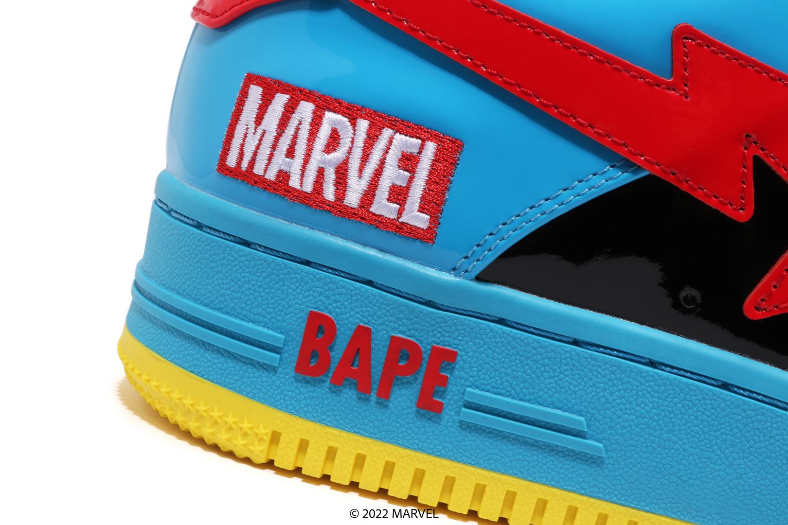 BAthtPE STA?? with patent leather upper. A reprint model of the 25-06 Marvel Comics collaboration. The character of Doctor Strange is printed on the side of the left heel, and the outline is embossed. Marvel logo embroidery on the right heel. The blister pack packaging has also been revived, and the mount has been significantly updated. The insole has the same design as the mount, and the shoelaces are also equipped with a dubrae exclusive to this collaboration. A collaboration model with Marvel Comics.