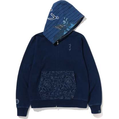 SAMURAI INDIGO FULL ZIP HOODIE MENS