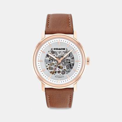 Rose gold tone case and leather strap