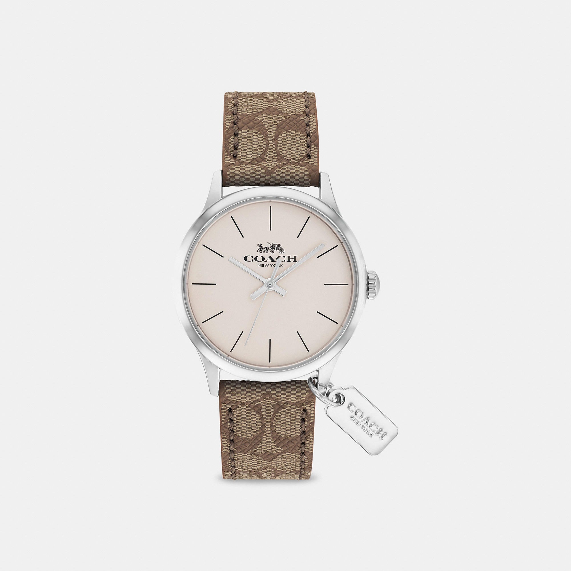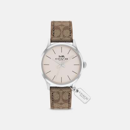 Stainless steel case and Signature canvas strap Approx. case diameter - 32mm Mineral crystal Quartz movement Buckle closure Water-resistant to 99 feet
