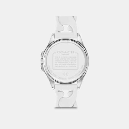 Stainless steel case and Signature rubber strap Approx. case diameter - 34mm Mineral crystal Quartz movement Buckle closure Water-resistant to 99 feet Style No. C9578 | Outlet Libby Watch, 34 Mm - White