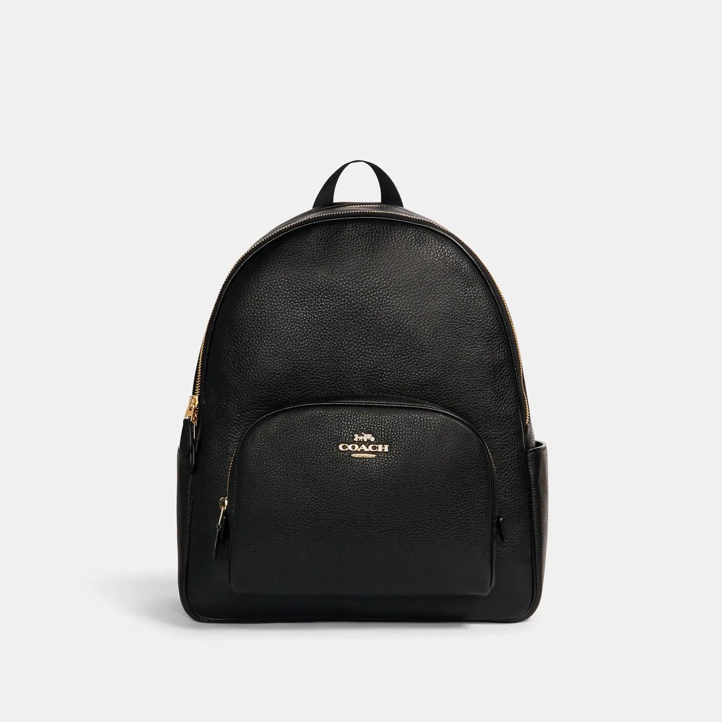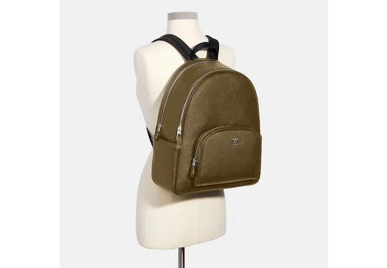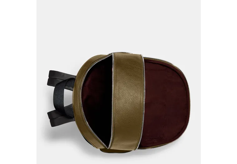 Refined pebble leather Inside zip cell phone and multifunction pockets Double zip closure fabric lining Top handle with 2 1/2 drop Outside zip and slip pockets Adjustable shoulder straps 13 (L) x 15 1/4 (H) x 5 (W) Style No. 5669