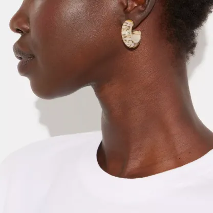 These chunky resin hoop earrings are accented with our scattered Signature. They're finished with a hypoallergenic titanium post and butterfly closure.