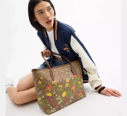 City Tote Bag In Signature Canvas With Floral Print