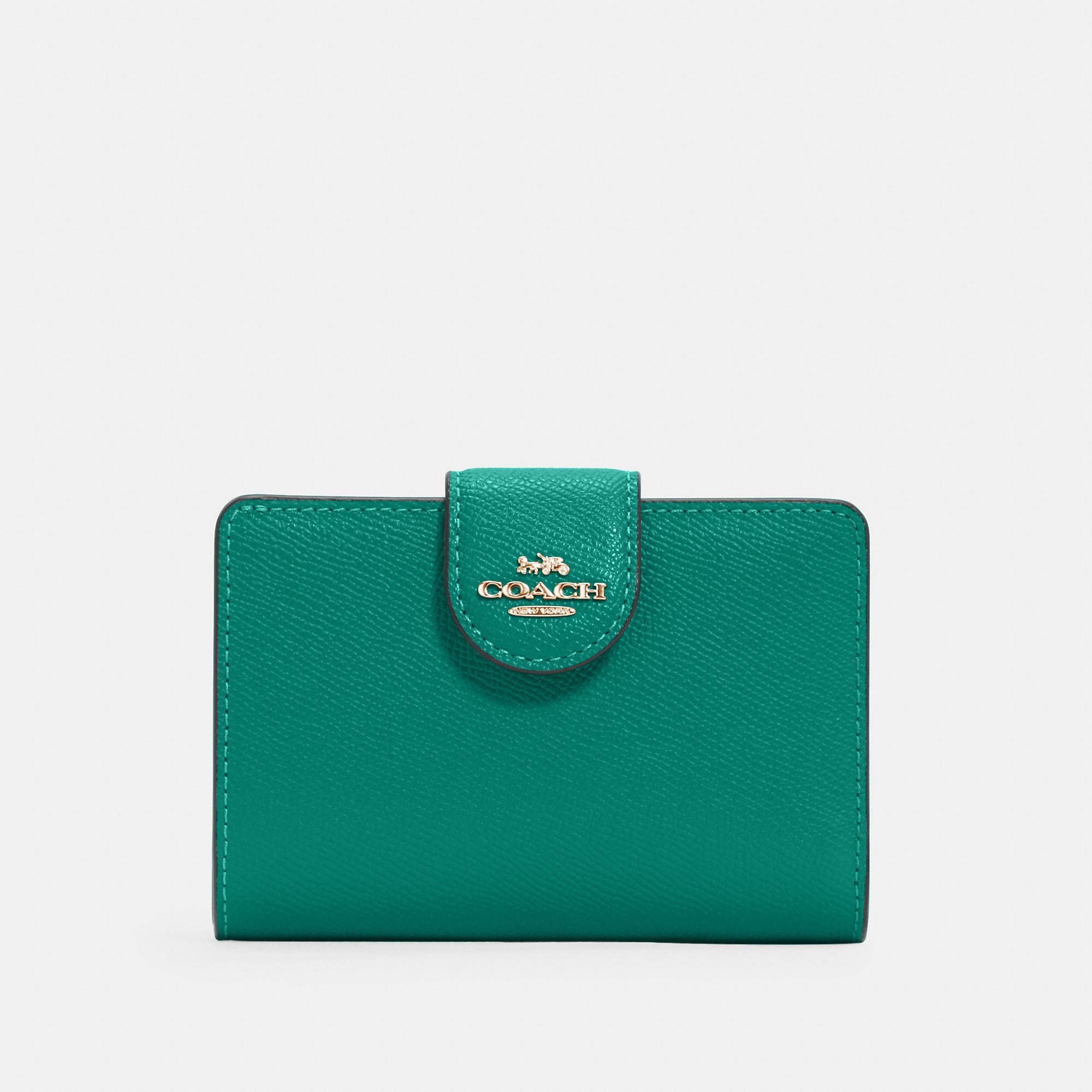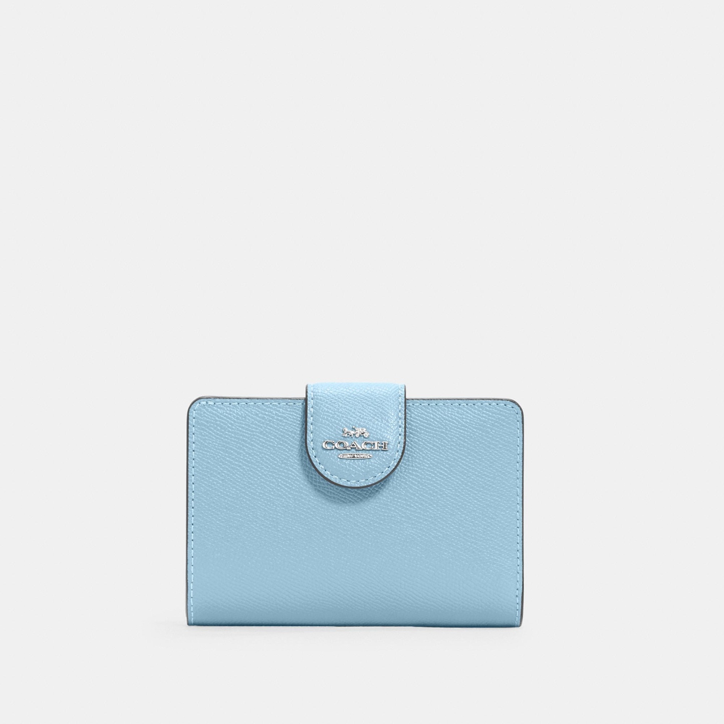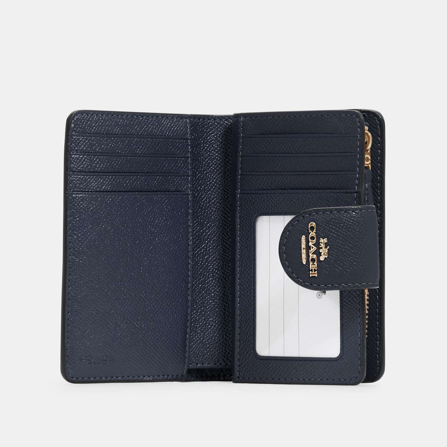 Crossgrain leather Seven credit card slots Bill compartment ID window Snap closure Zip coin pocket 5 (L) x 3 1/2 (H) x 1/2 (W) Style No. 6390 | Outlet Medium Corner Zip Wallet - Blue