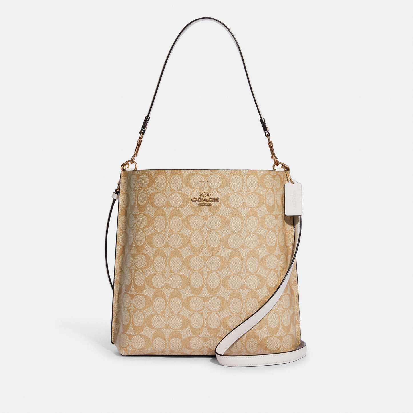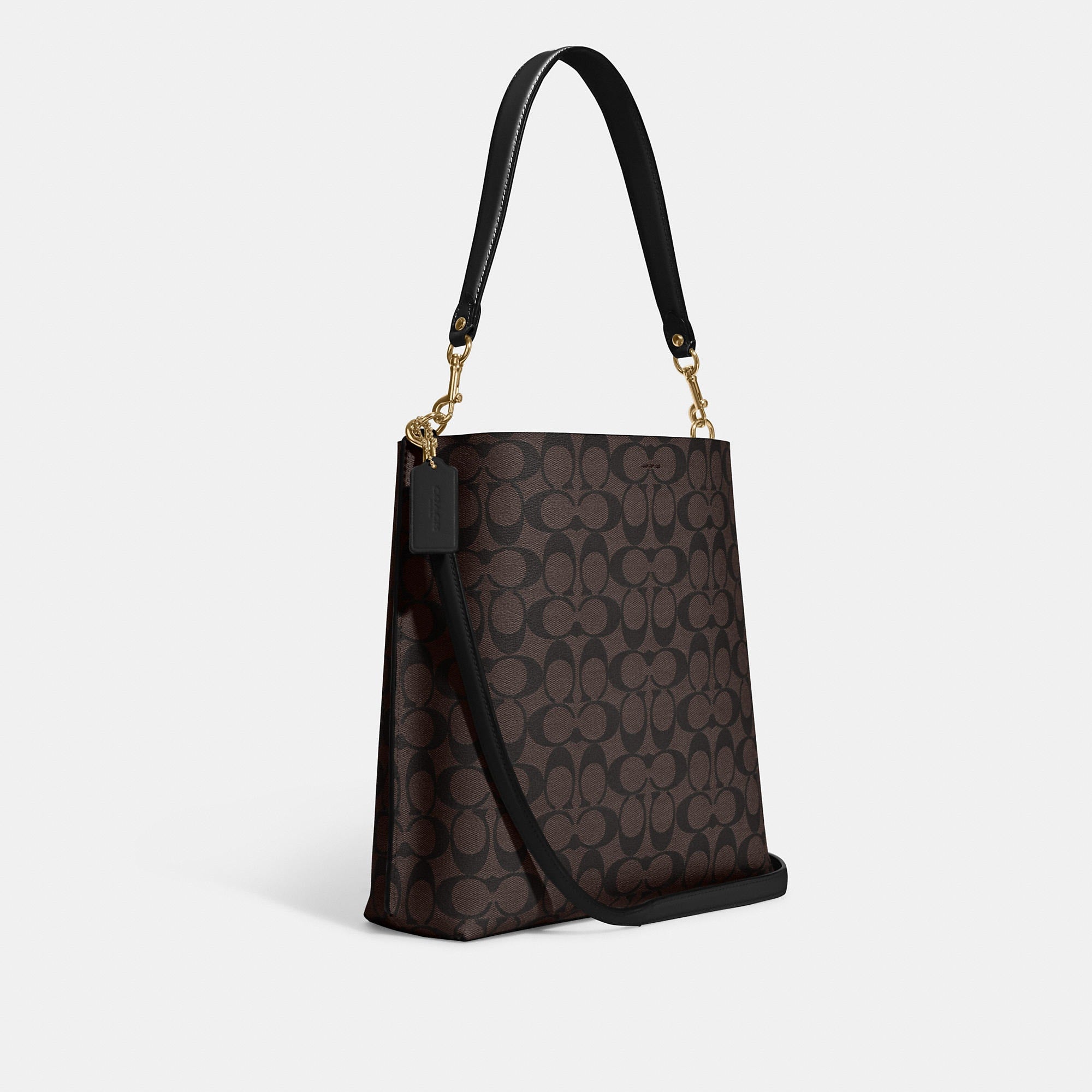 Signature coated canvas and smooth leather Center zip compartment Snap closure Detachable handle with 10 drop Detachable strap with 20 1/2 drop for shoulder or crossbody wear 11 (L) x 11 1/2 (H) x 3 3/4 (W) Style No. CA561 | Outlet Mollie Bucket Bag In Signature Canvas - Brown
