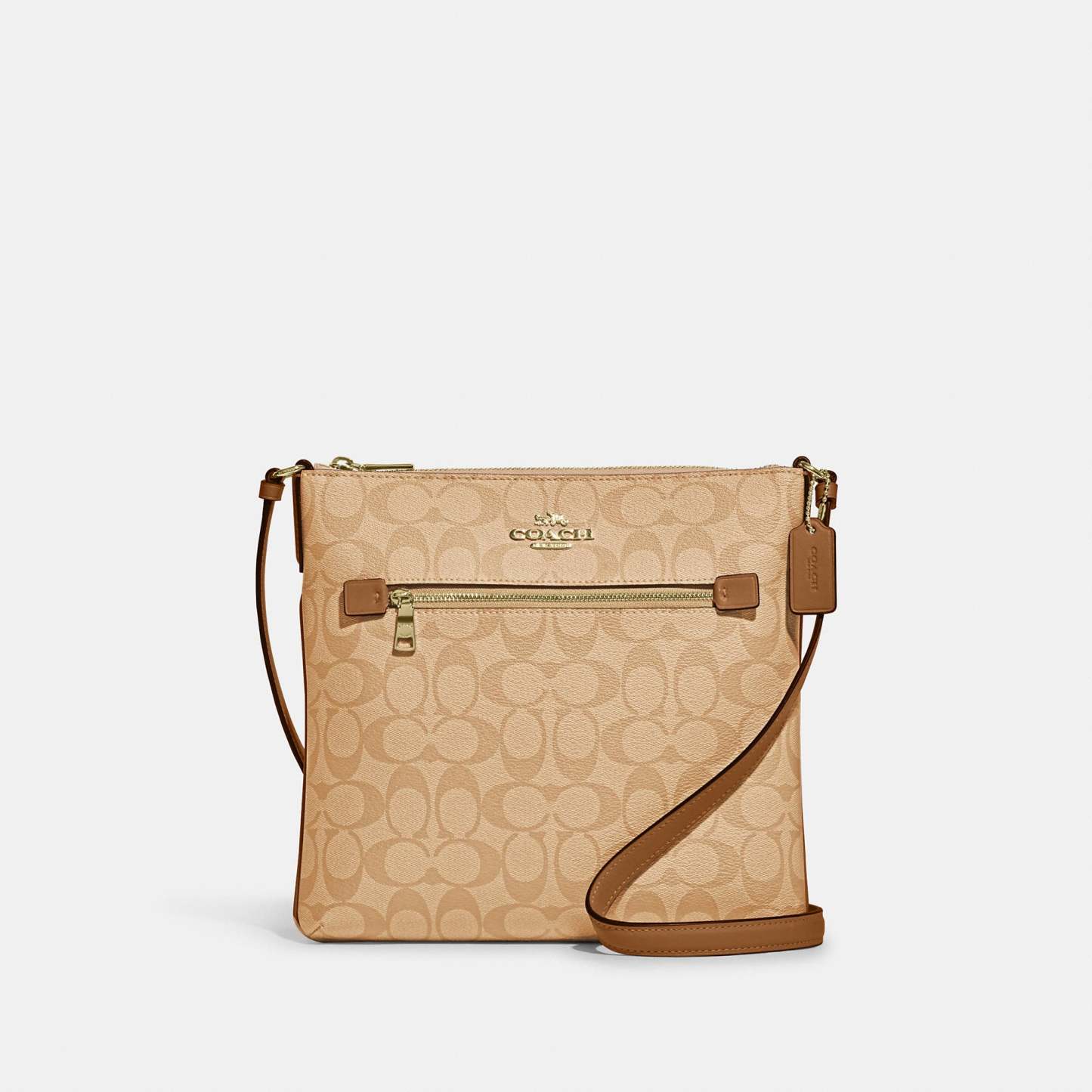 Signature coated canvas and smooth leather Inside multifunction pocket Zip-top closure fabric lining Outside zip pocket Adjustable strap with 21 3/4 drop for shoulder or crossbody wear 10 1/4 (L) x 9 3/4 (H) x 1 1/2 (W) Style No. C1554