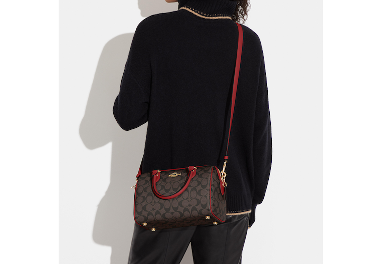 Signature coated canvas and smooth leather Inside zip and multifunction pockets Zip closure fabric lining Handles with 4 1/4 drop Outside zip pocket Detachable strap with 23 drop for shoulder or crossbody wear Four protective feet at base 10 (L) x 6 1/2 (H) x 5 1/2 (W) Style No. CH280 | Outlet Rowan Satchel In Signature Canvas - Multi