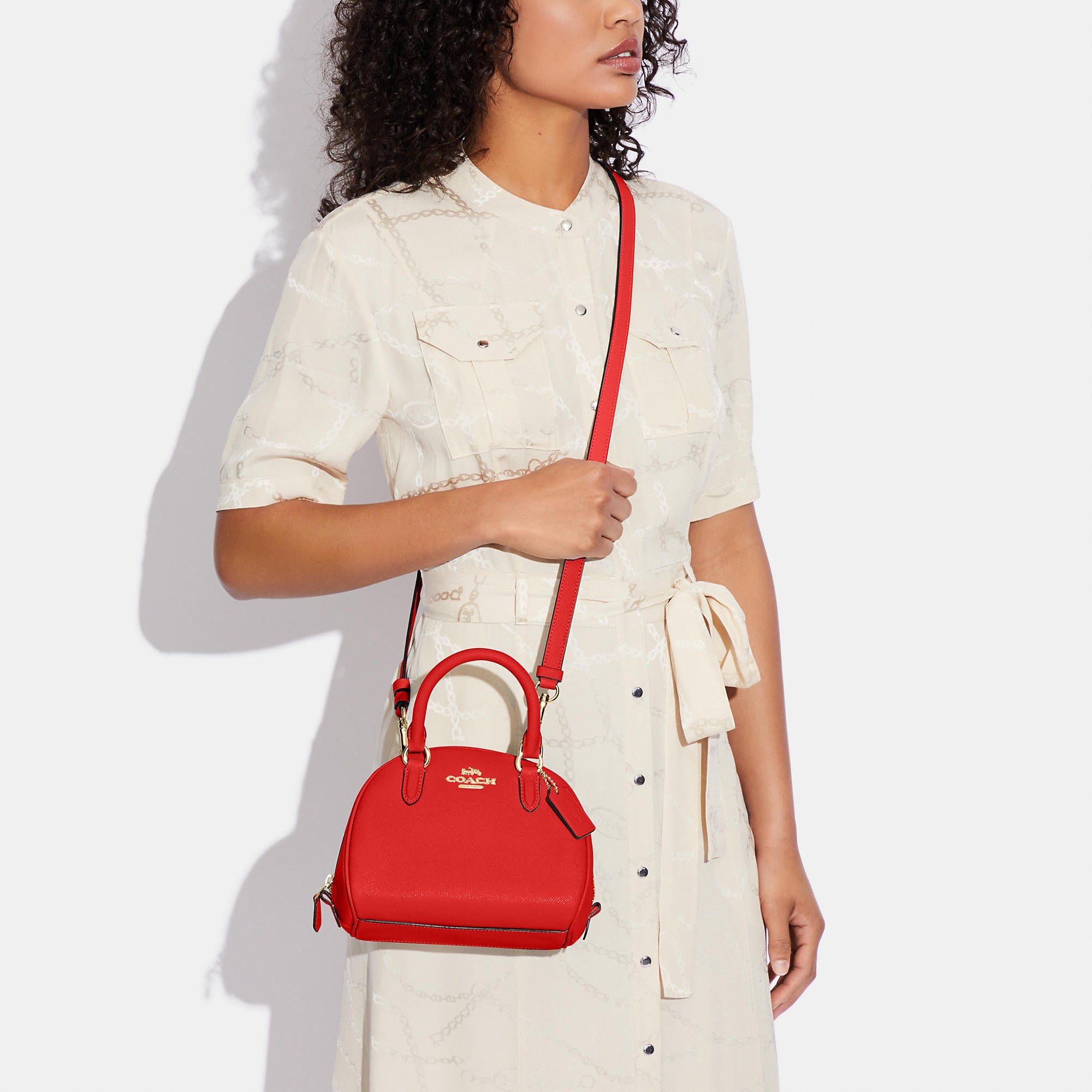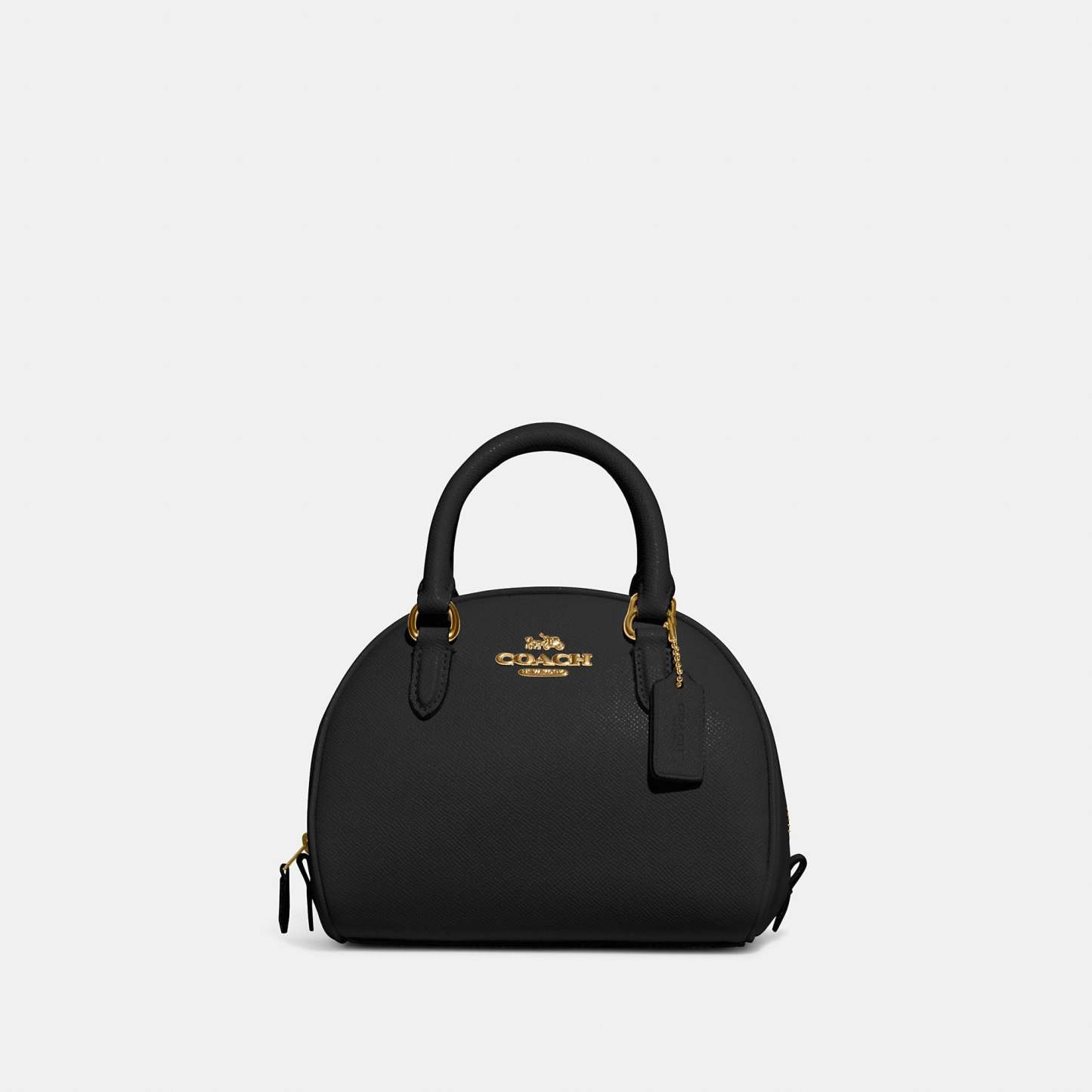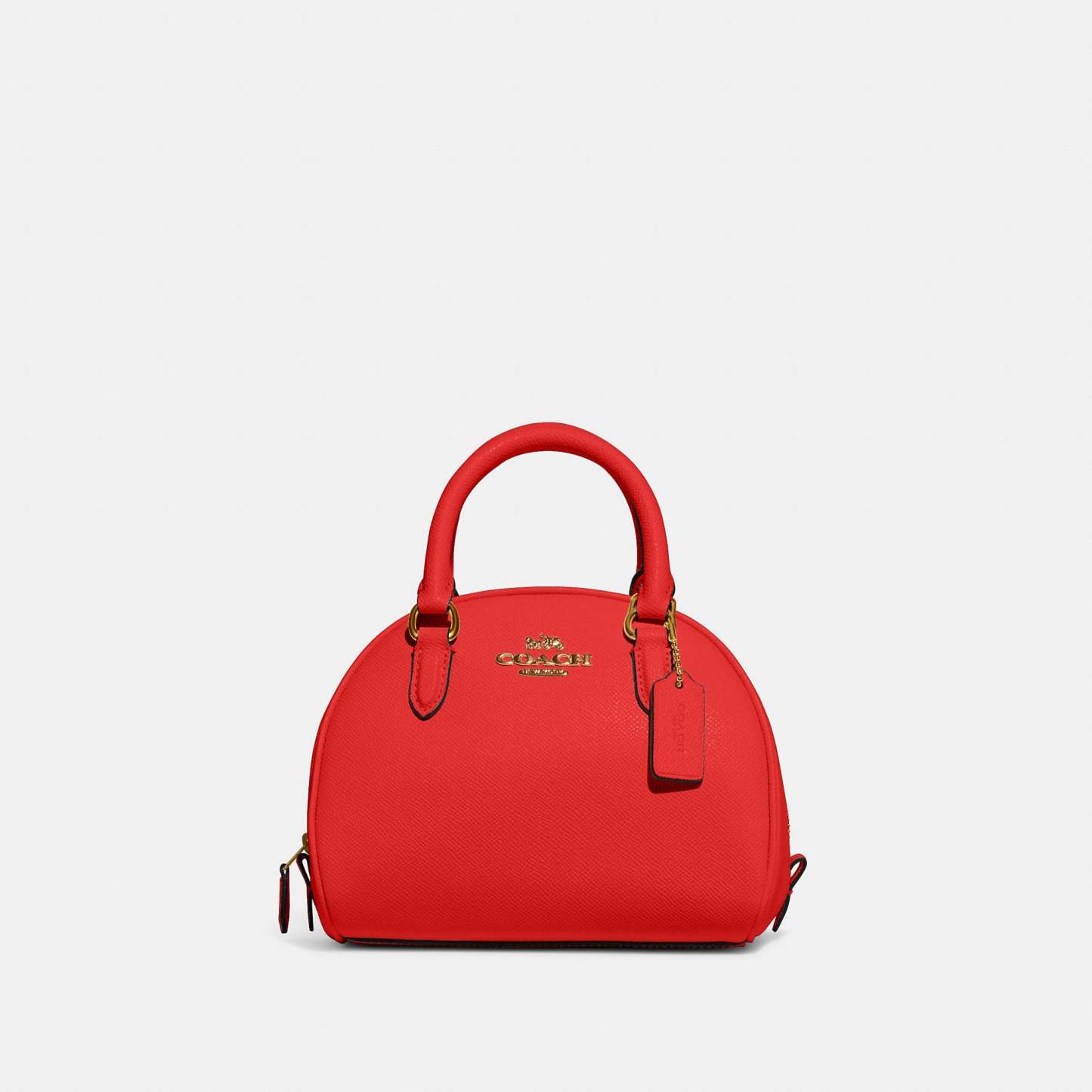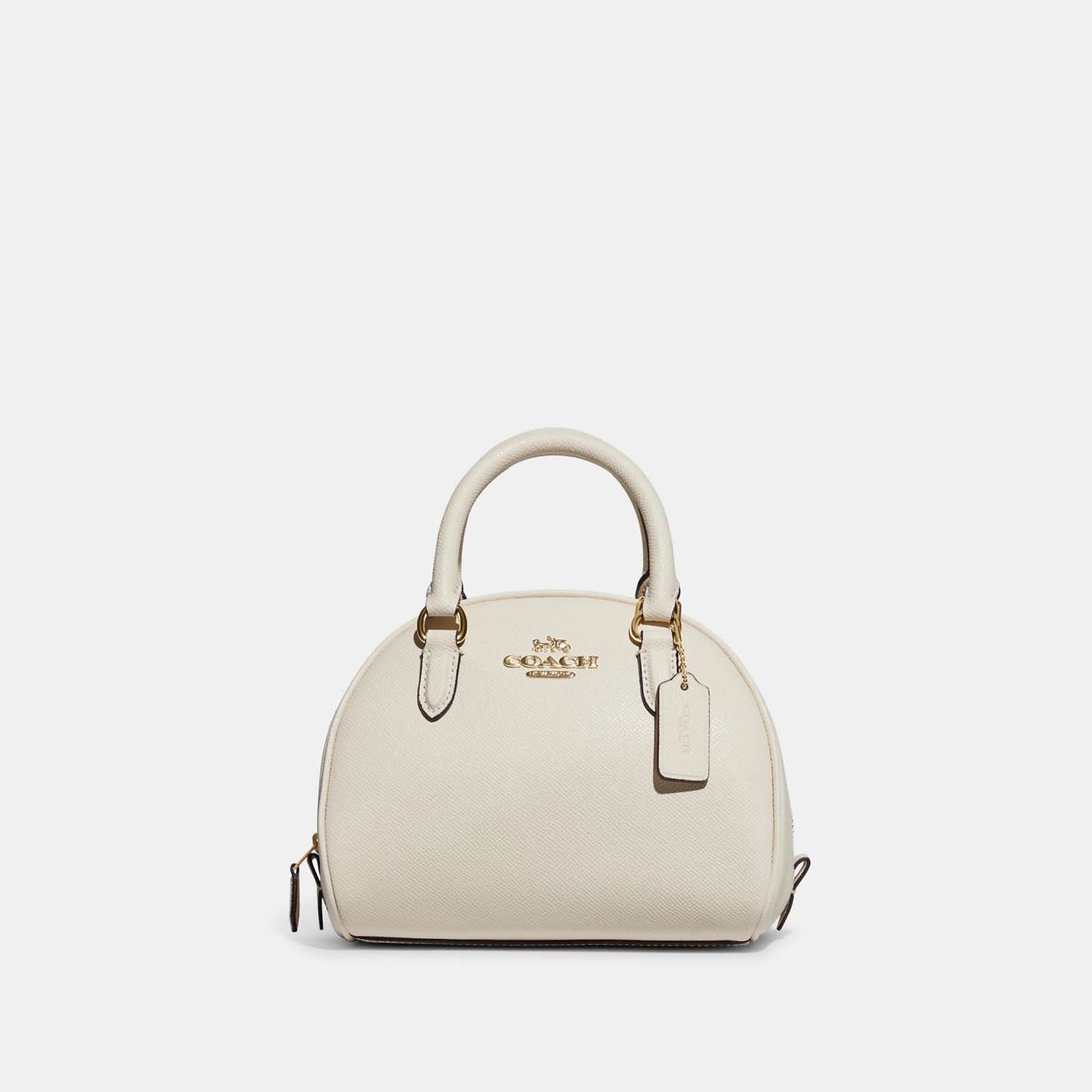 Crossgrain leather Inside multifunction pocket Zip closure fabric lining Handles with 2 3/4 drop Detachable strap with 22 1/2 drop for shoulder or crossbody wear 8 (L) x 6 (H) x 5 (W) Style No. CA202