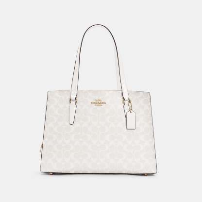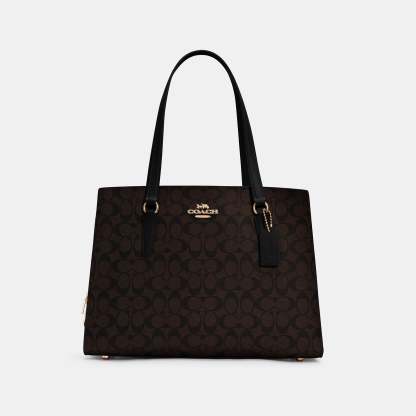 Signature coated canvas and smooth leather Fits a 15 laptop Inside cell phone and multifunction pockets Zip closure fabric lining Side open compartments Handles with 10 drop Four protective feet at base 15 3/4 (L) x 11 1/2 (H) x 6 (W) Style No. C4076 | Outlet Tatum Carryall 40 In Signature Canvas - Brown