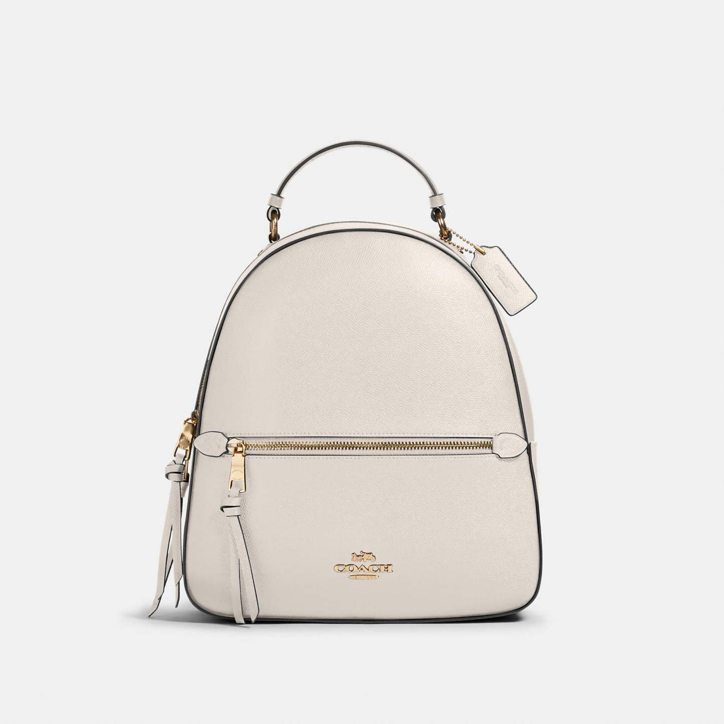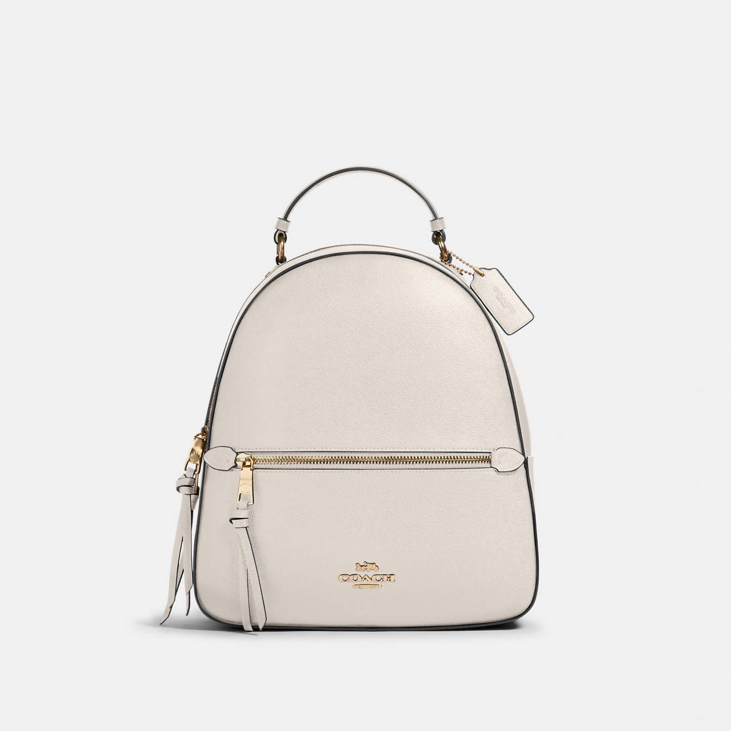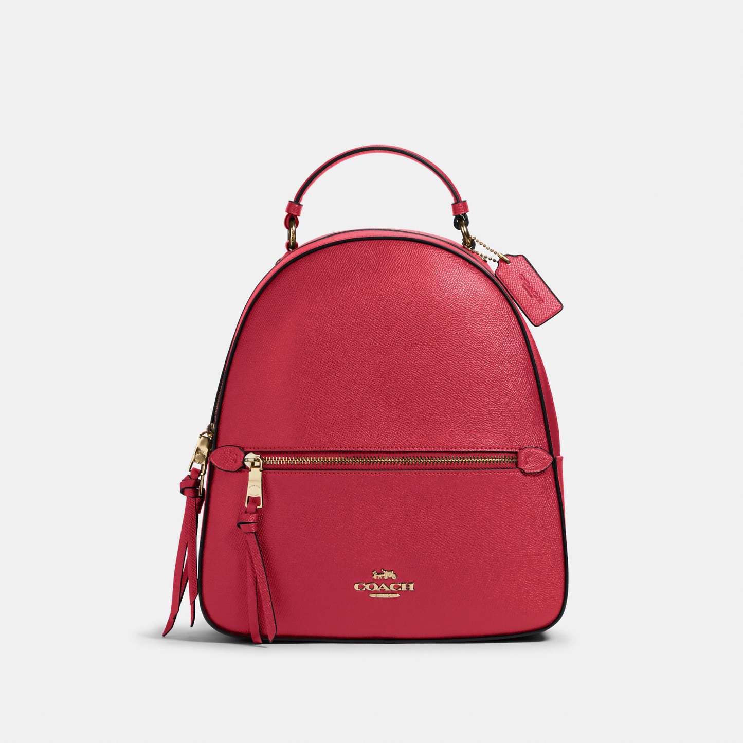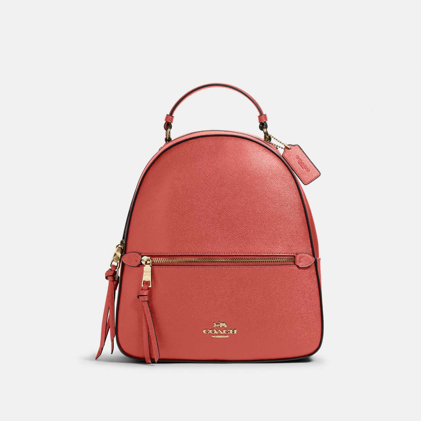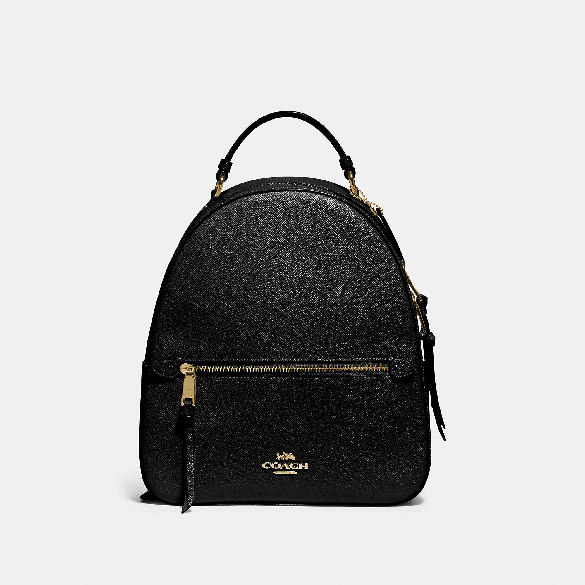 This crossgrain leather Jordyn backpack is perfectly sized for everyday and weekend adventures. Crossgrain leather Inside zip pocket Zip closure, fabric lining Top handle with 2In drop Outside zip pocket Adjustable shoulder straps 10 1/2In (L) x 12 1/4In (H) x 3 3/4In (W)