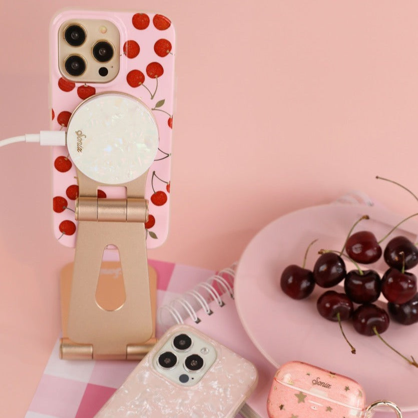 Cherries always travel in pairs, and this iPhone case is the ideal pair to your MagSafe® charging system.?
