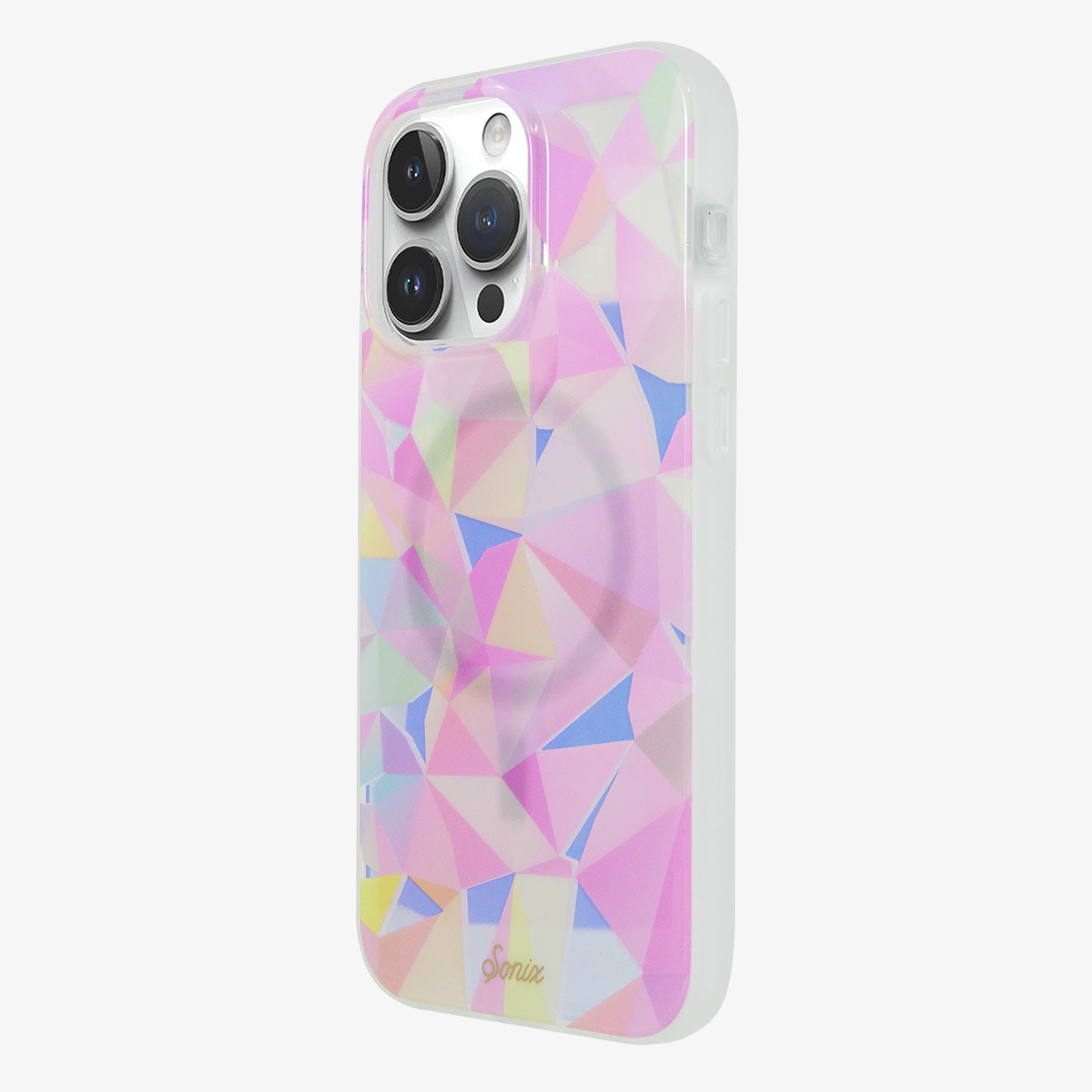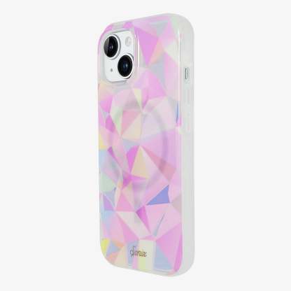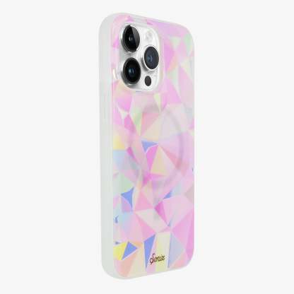 There is a lot of symbolism attached to the prism: unity, cosmic time, diversity, the 1960��s . . . we are here for all of it. Whatever your emotional attachment to a prism might be, one thing is for sure: it is timeless, chic, and pretty. Our Glam Prismatic MagSafe® Compatible iPhone case captures the beauty and cool factor of the prism in the coolest hues of pink and baby blue. With clear cutouts and an iridescent overlay to enhance the glamor of a maximal design, this phone case is a spiritual experience of its own.