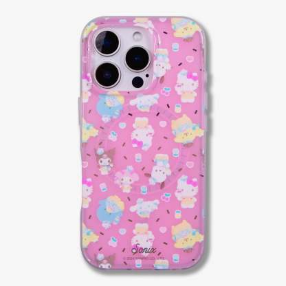 We��ve teamed up with Sanrio® to create the most delicious ice cream dream. The Hello Kitty® & Friends Ice Cream Parlor MagSafe® compatible iPhone case features all your favorite Sanrio® characters enjoying a sweet, frosty treat. The gold foil details, sweet and sparkly jelly pink background, and adorable Hello Kitty®, Kuromi™, Pochacco™, My Melody™, Cinnamoroll™, Pompompurin™, and Tuxedo Sam™ designs are sure to melt your heart.
