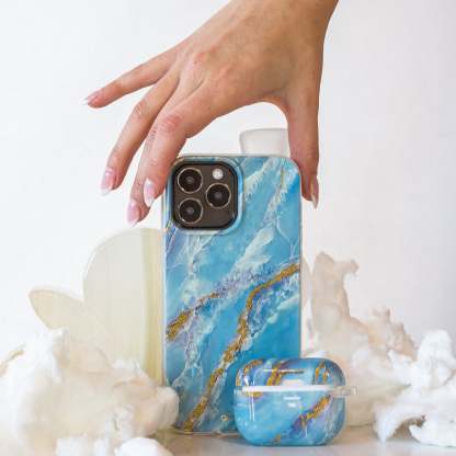 Ice Blue Marble iPhone?case is not your average marble. This striking icy blue marble with gold glitter metallic veins is an interior designer��s dream. Ice Blue Marble comes in a non MagSafe® Compatible Case -?