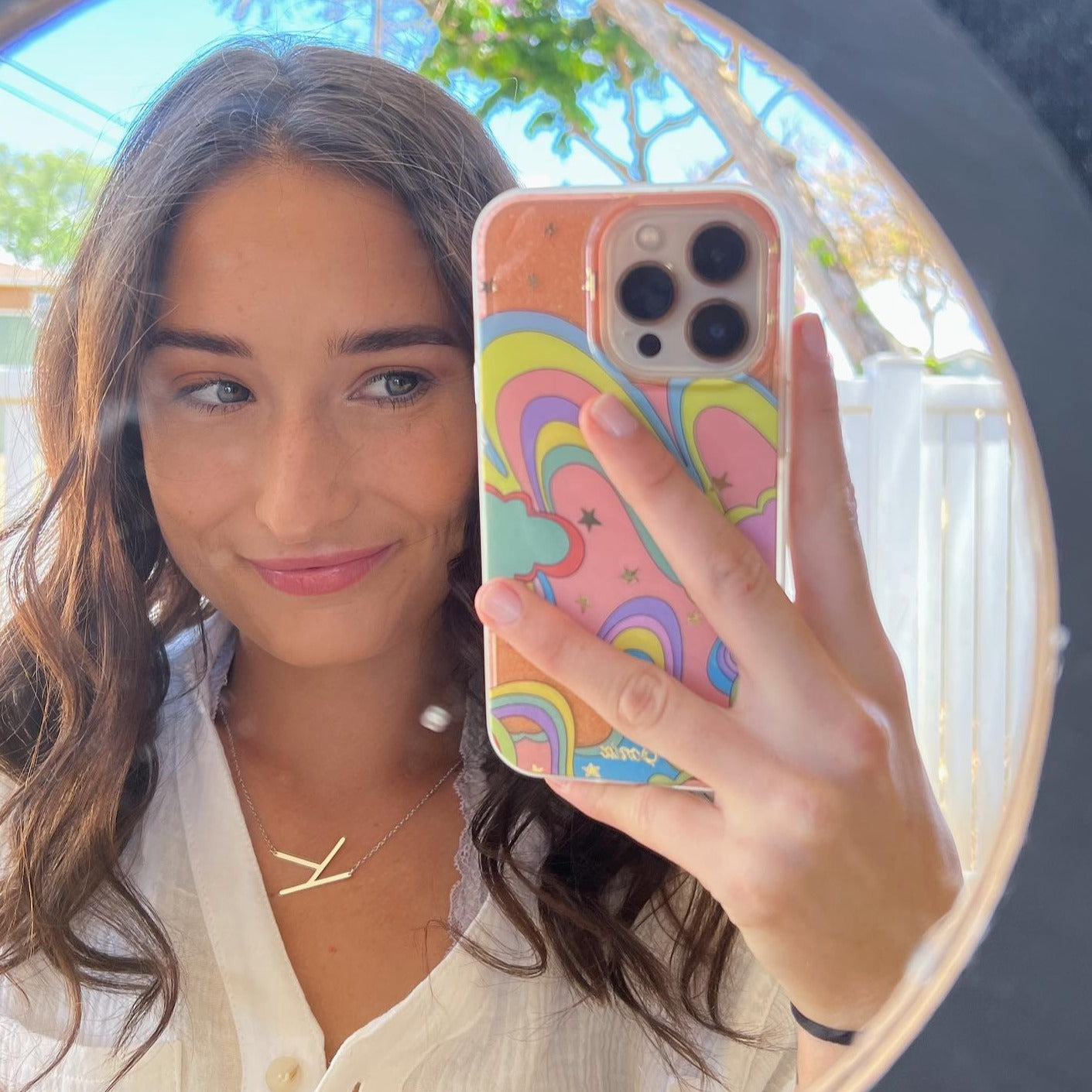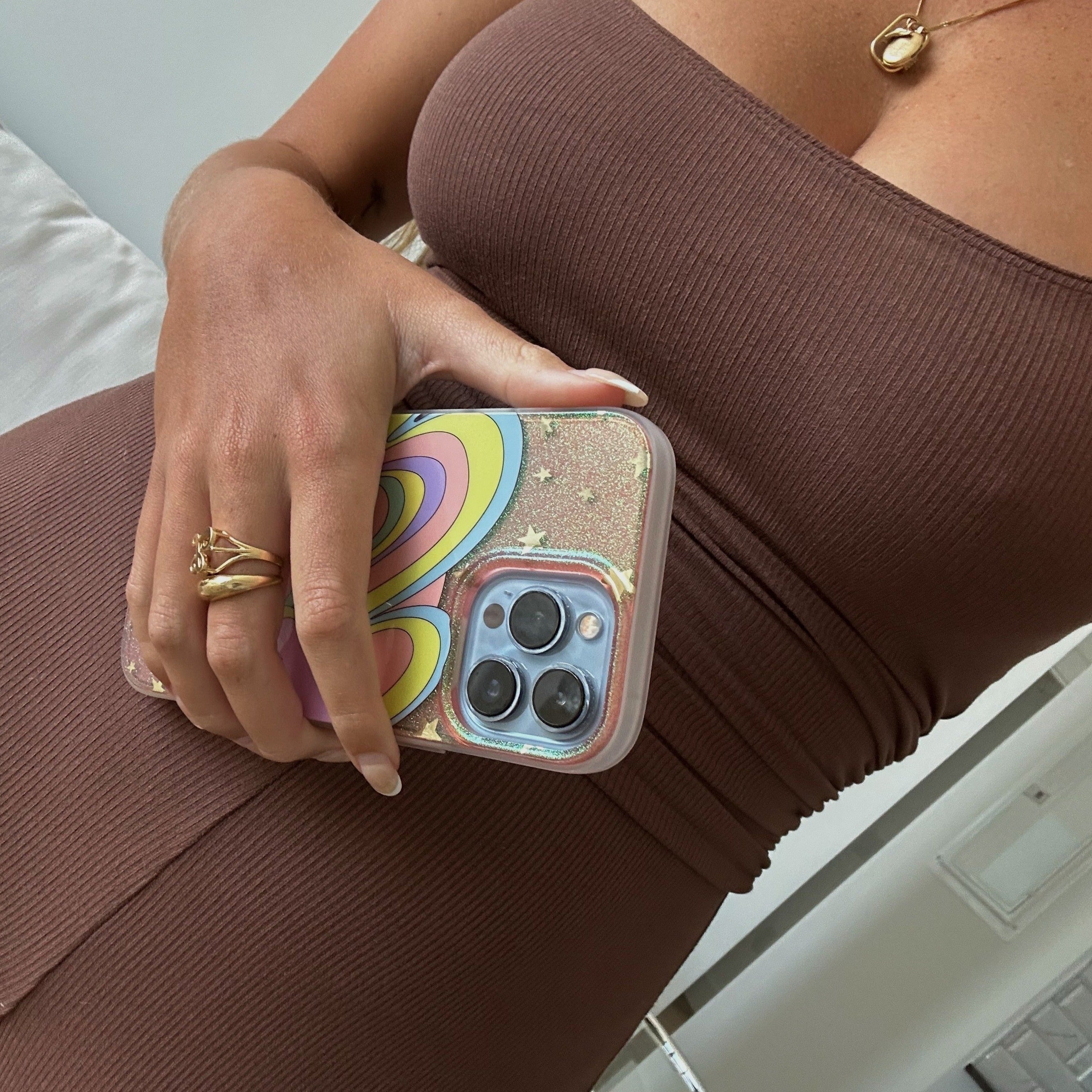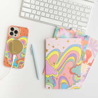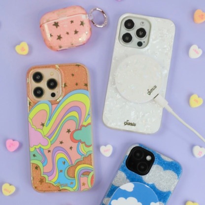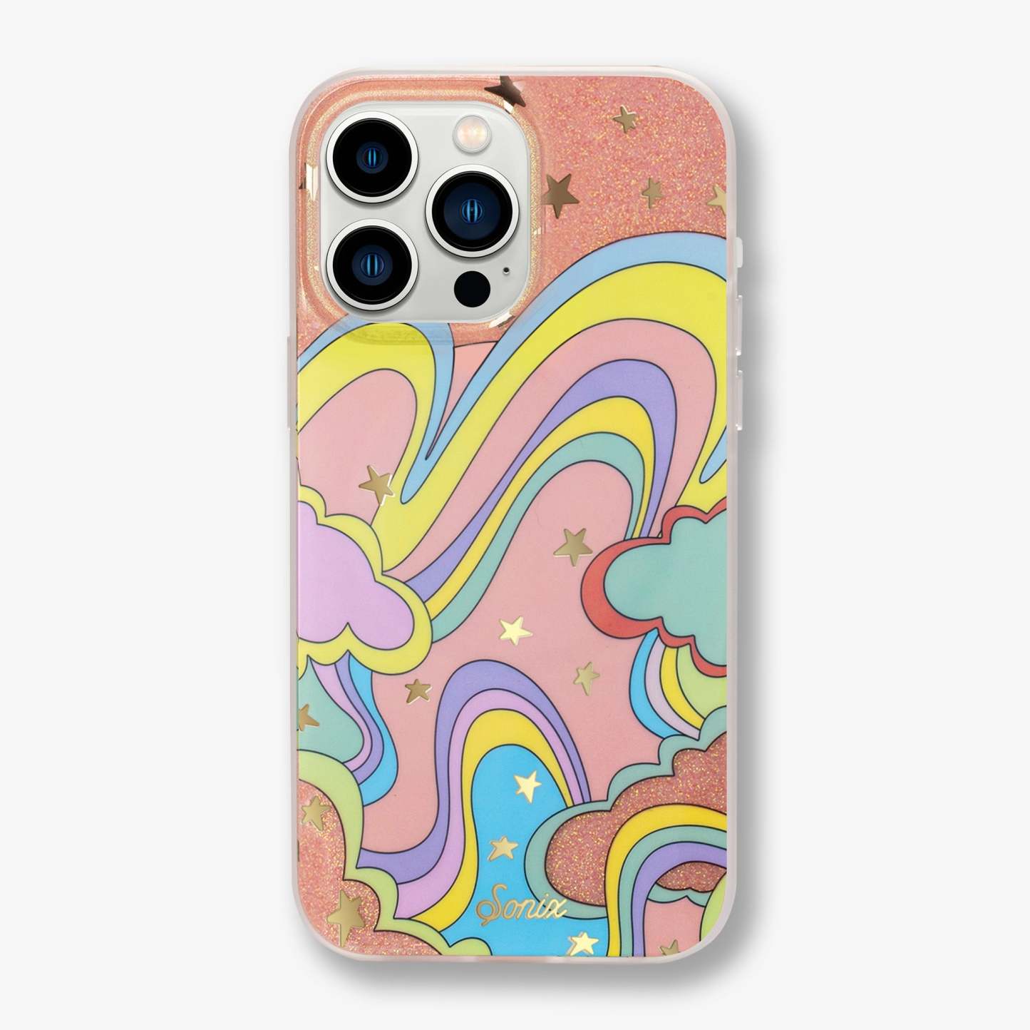 Illusion, MagSafe® Compatible iPhone case features a whimsical, dreamlike design filled with glitter and gold foil star details - creating this fun and festive illusion of another world!