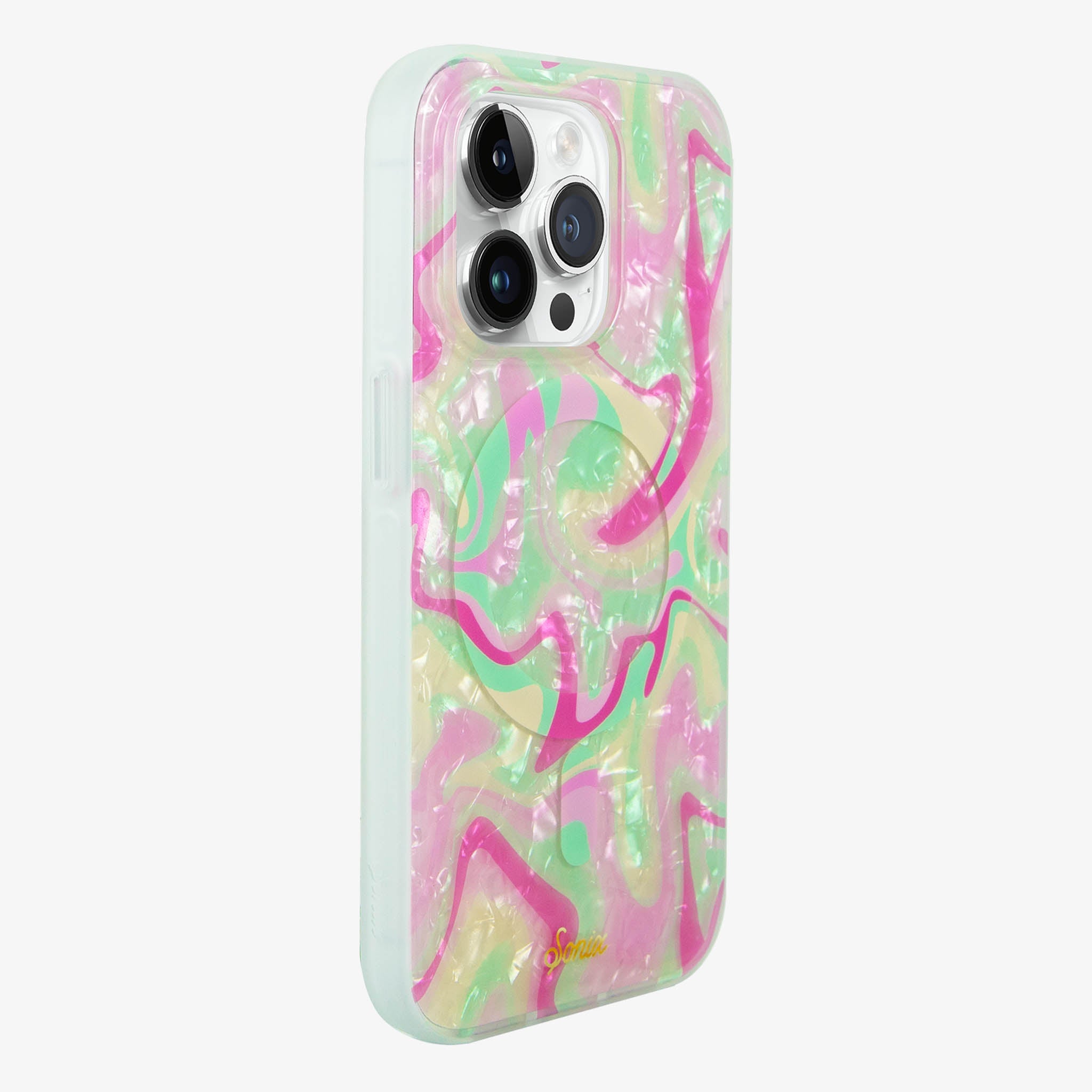 Matcha lovers sing the sweet tea��s praises due to its health benefits and ability to energize the body. That��s all great, but we are energized by the gorgeous pale green hue of the popular drink so much that we gave the matcha its own iPhone case. And, just to sweeten the deal, we threw in an equally pretty strawberry element and swirled it around. The colors of this MagSafe®? Compatible case against a meditative tort background . . . we��re already seeing the (mental) health benefits here.?