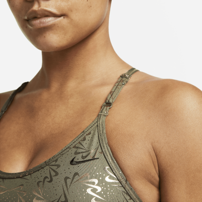 Don't lose a bit of sparkle as you train like a pro. With straps that adjust in the front and easily removable pads, this bra makes simple support even easier so you stay effortlessly comfortable. Its sweat-wicking fabric is designed for breathability in case you work up a sweat.