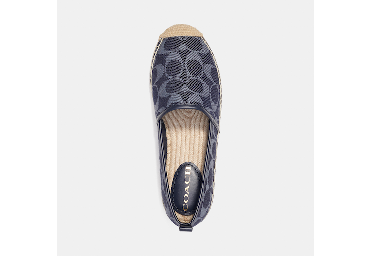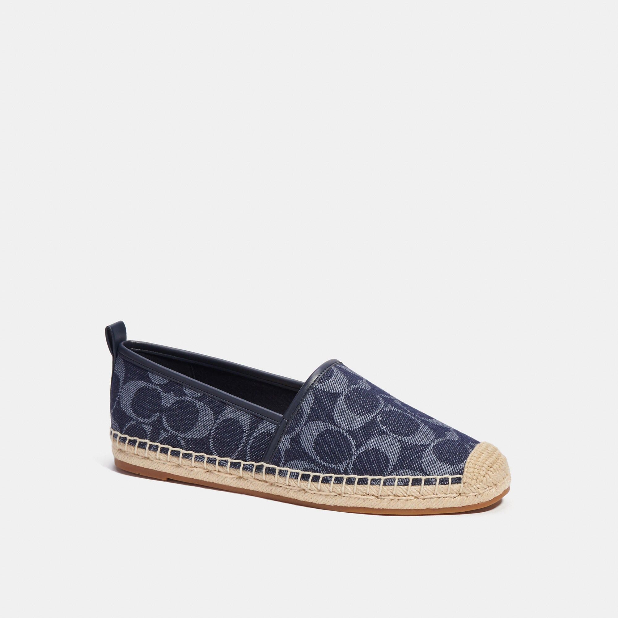 Signature denim and man-made leather upper Fabric lining jute footbed Rubber outsole Slip on 1/2 platform Style No. CG630 | Outlet Codi Espadrille In Signature Denim - Blue, Size - 9