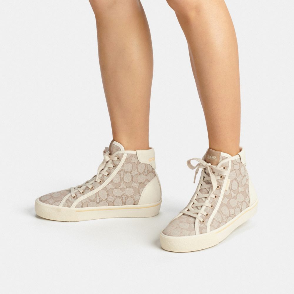 Signature jacquard and leather upper
