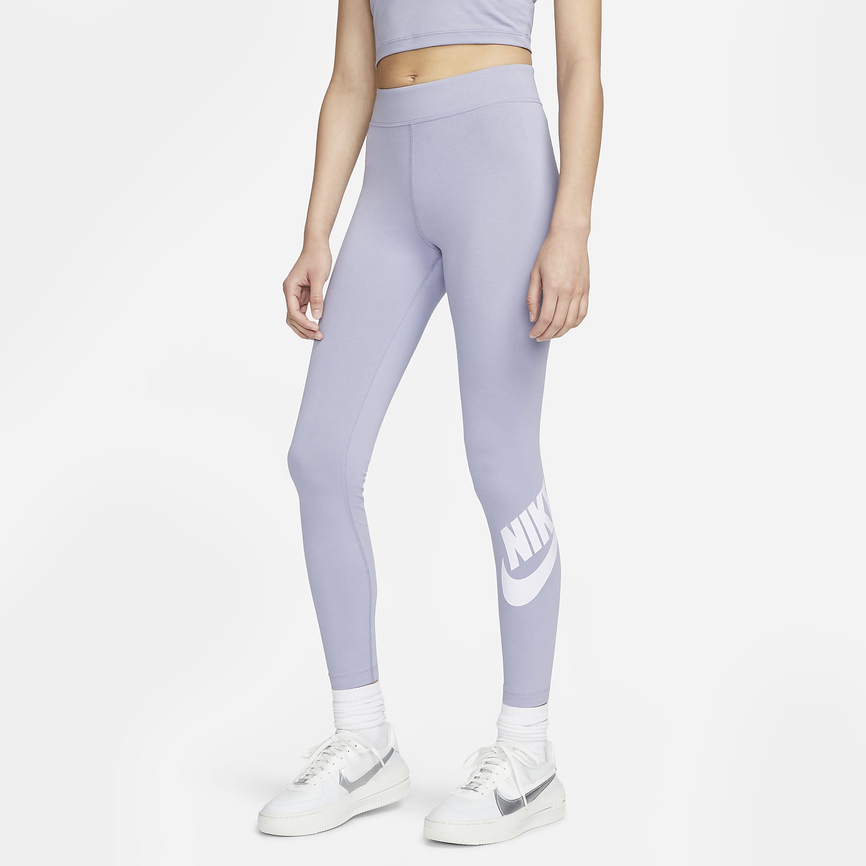 The perfect complement to your favorite tops and tees, the Sportswear Leggings have a high-rise design and a stretchy waistband that sits above your navel. The soft, cotton blend wicks sweat, making these full-length leggings an easy choice for everyday wear.