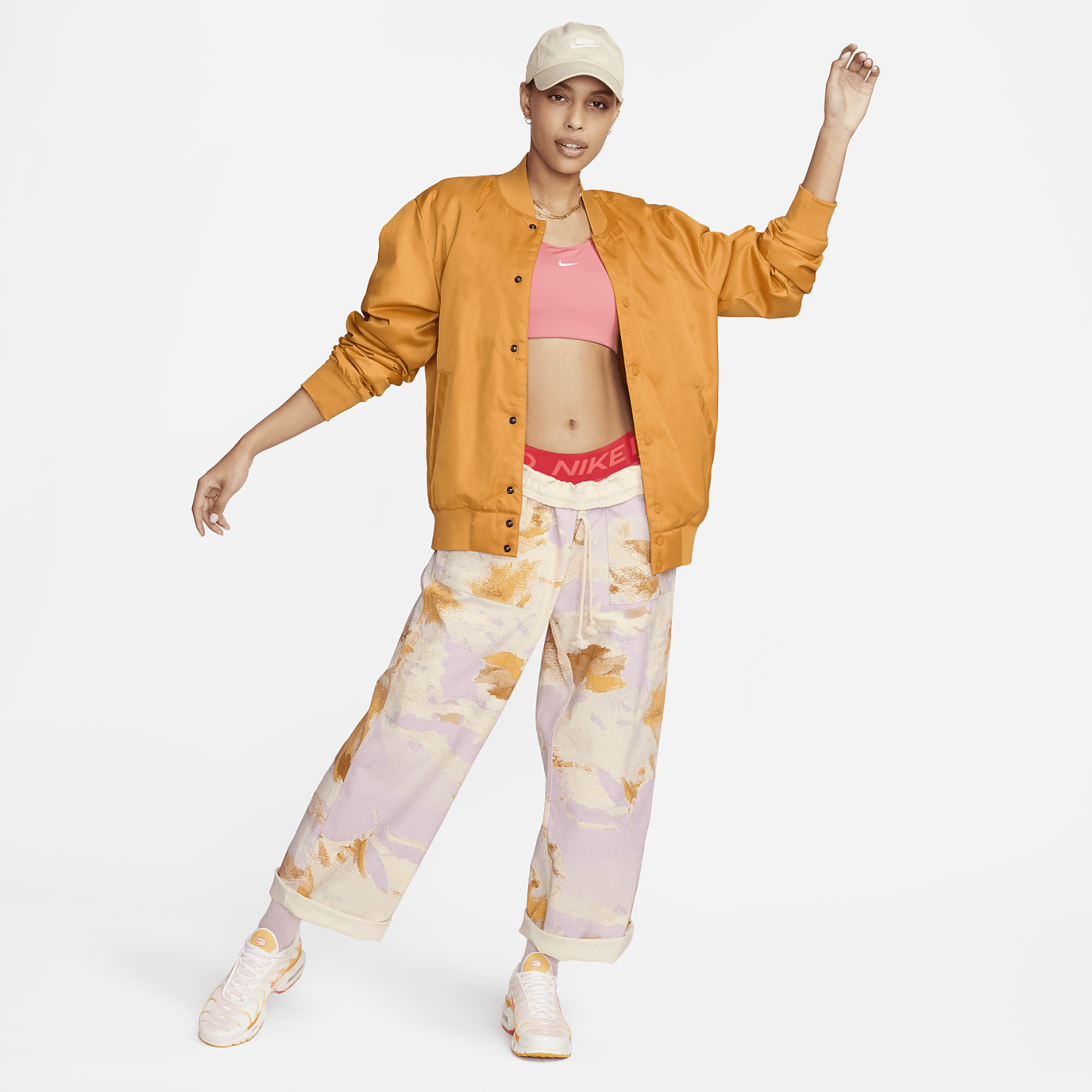 The Swoosh Sports Bra gives you classic coverage and medium support for activities like spin, cardio and dance classes. The removable padding has been redesigned to reliably stay in place while you work out. This product is made with at least 75% recycled polyester fibers.