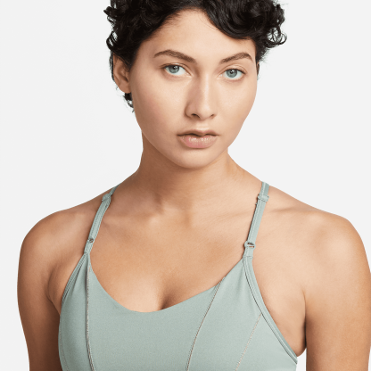 The Yoga Dri-FIT Indy Sports Bra gives you soft support to keep you moving comfortably on the mat. The lightweight, breathable design wicks sweat for a dry, natural feel—you’ll hardly know it’s there. Metallic trim on the front lets your confidence shine through every pose.